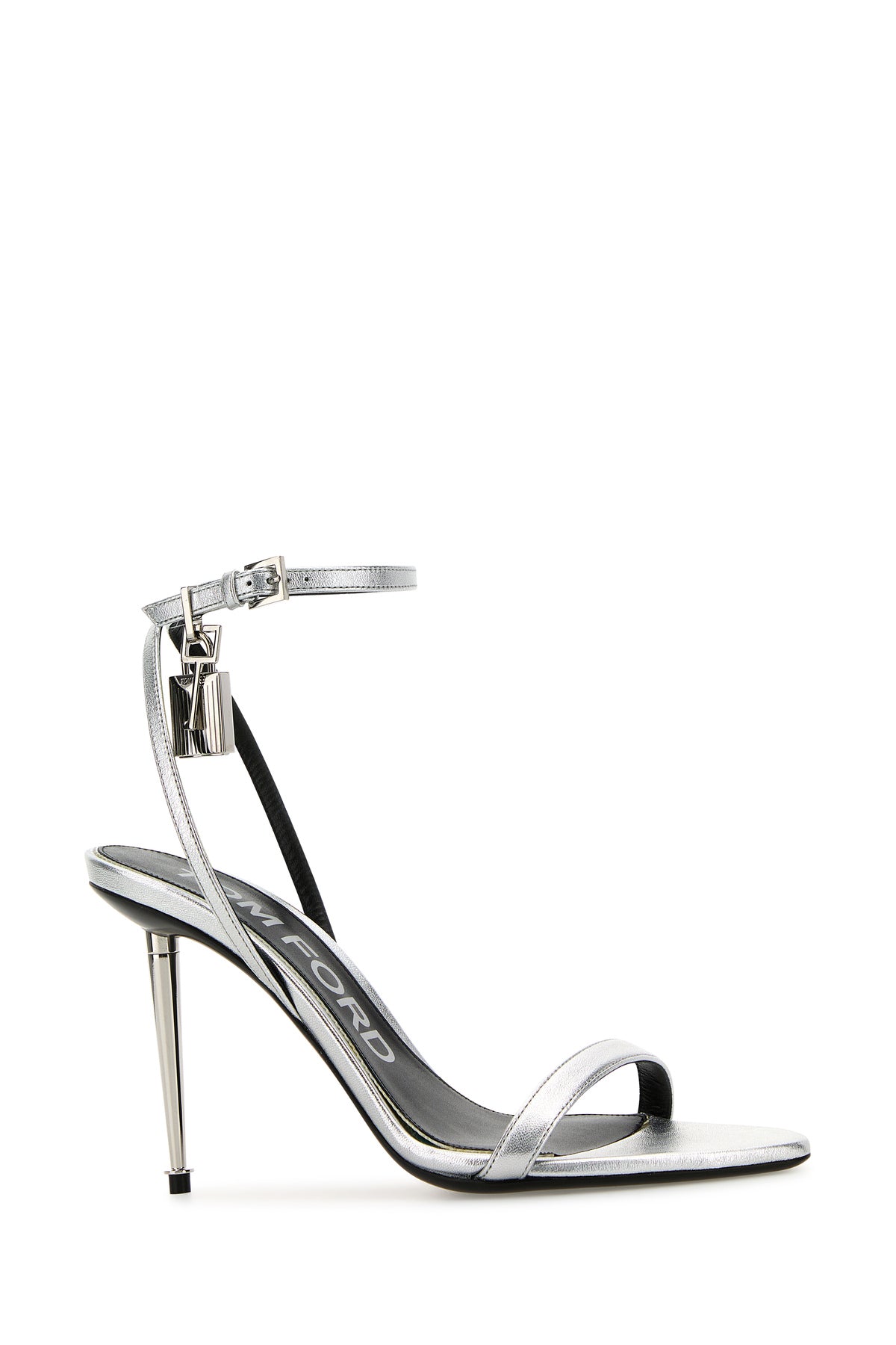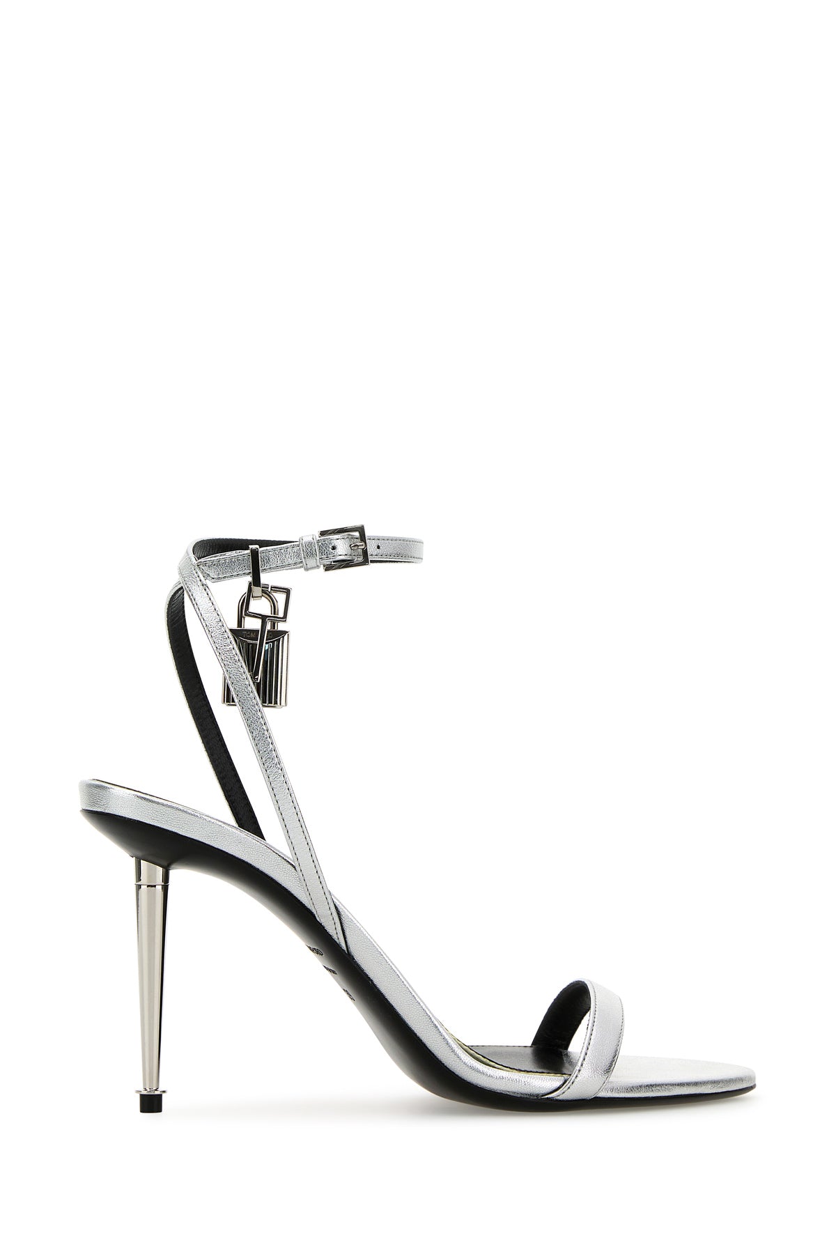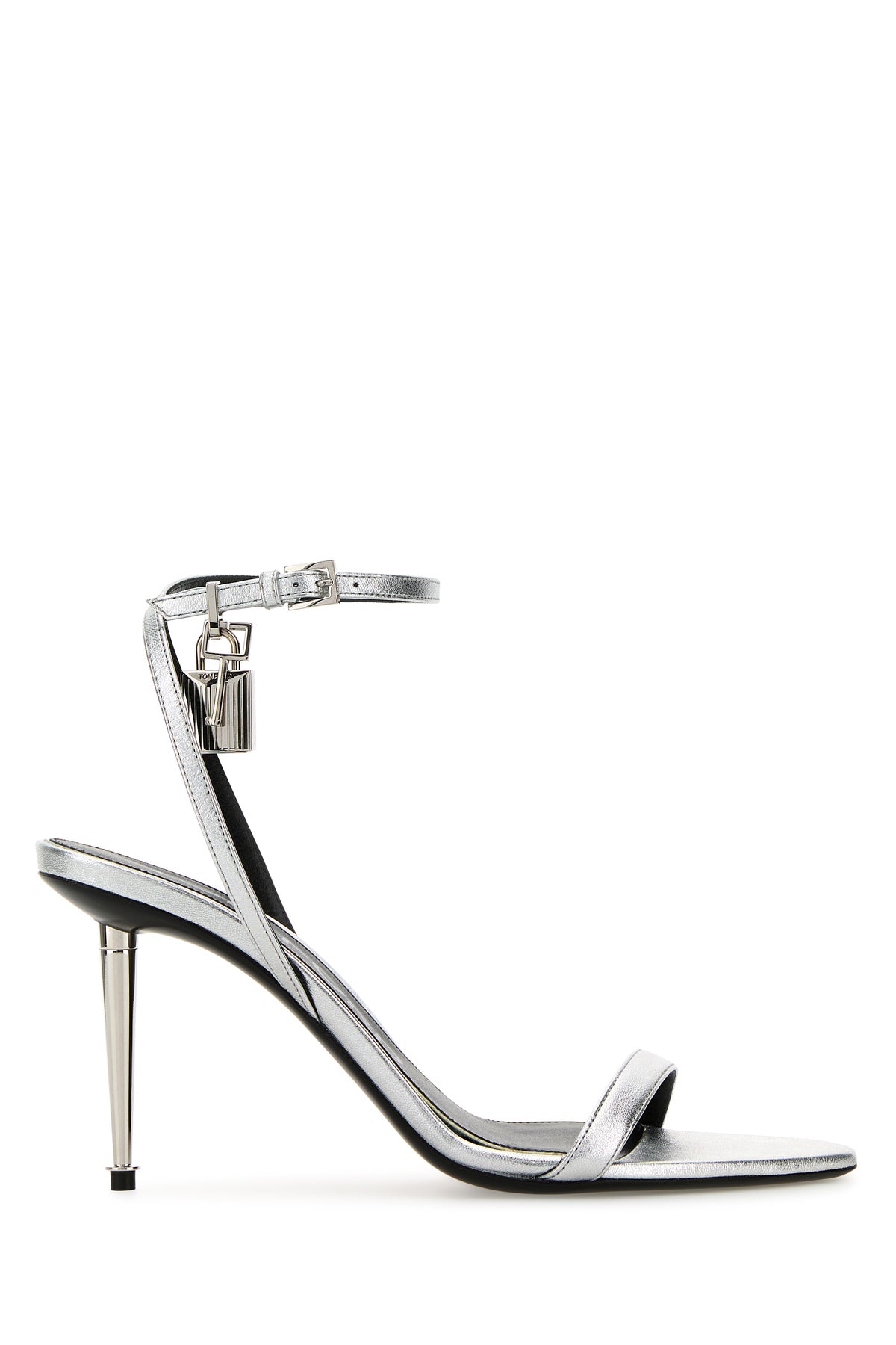 Sandali realizzati in nappa laminata arricchiti da lucchetto metallico decorativo sul lato.
