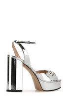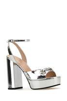Sandali realizzati in pelle liscia laminata arricchita da dettaglio metallico Morsetto sul collo del piede.