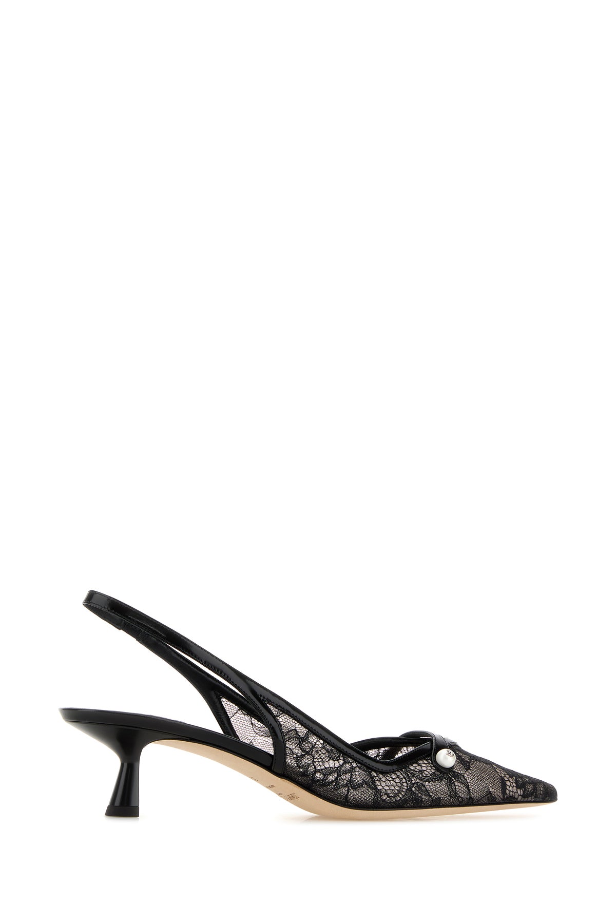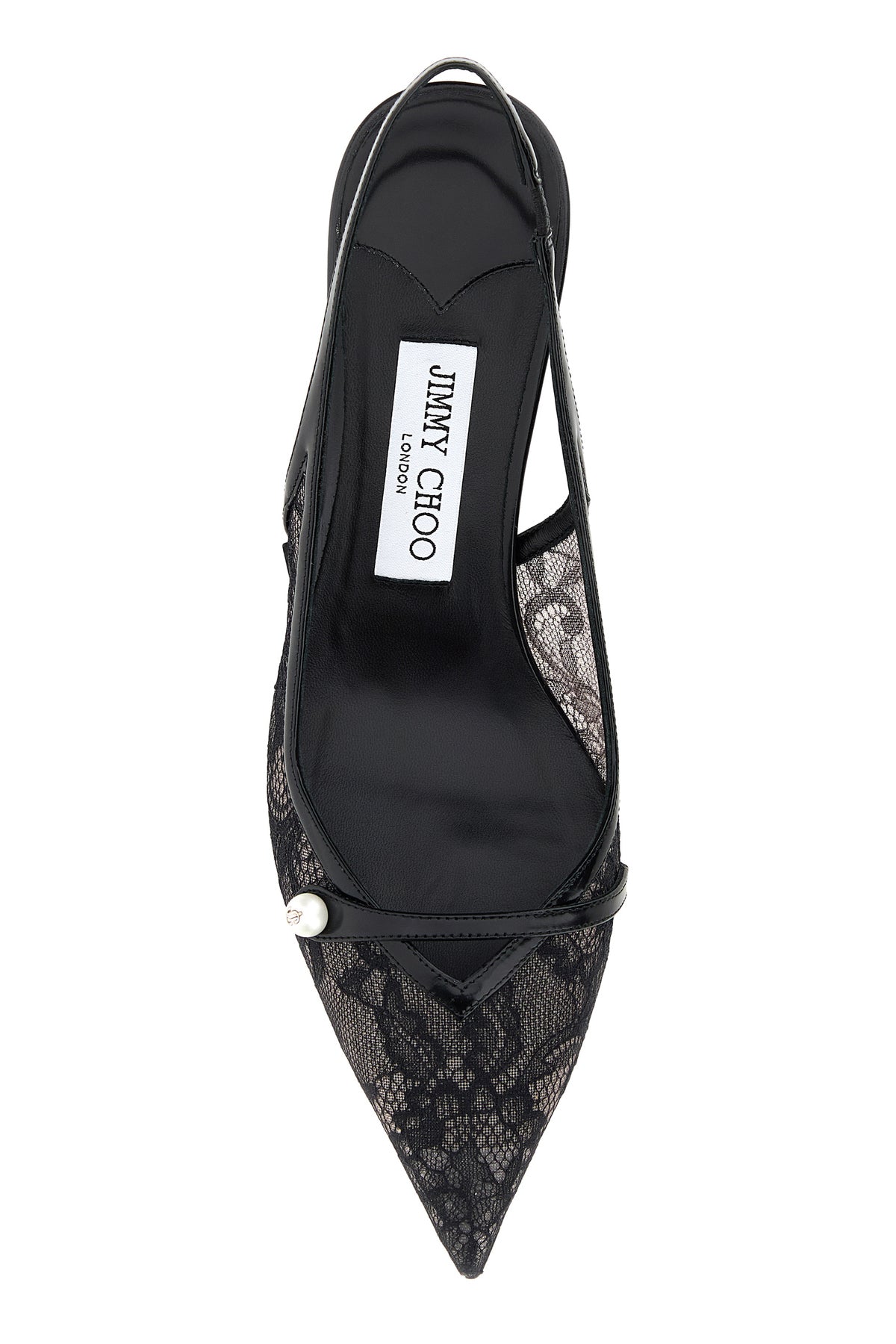 Slingback realizzate in pizzo arricchite da applicazione logata sul cinturino sul collo de piede.