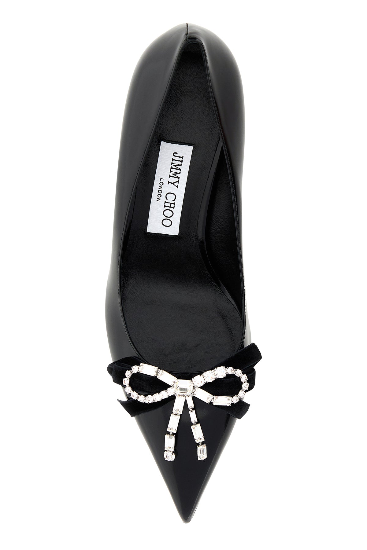 Scarpe con tacco realizzate in pelle dal finish lucido arricchite da fiocco gioiello sul collo del piede.