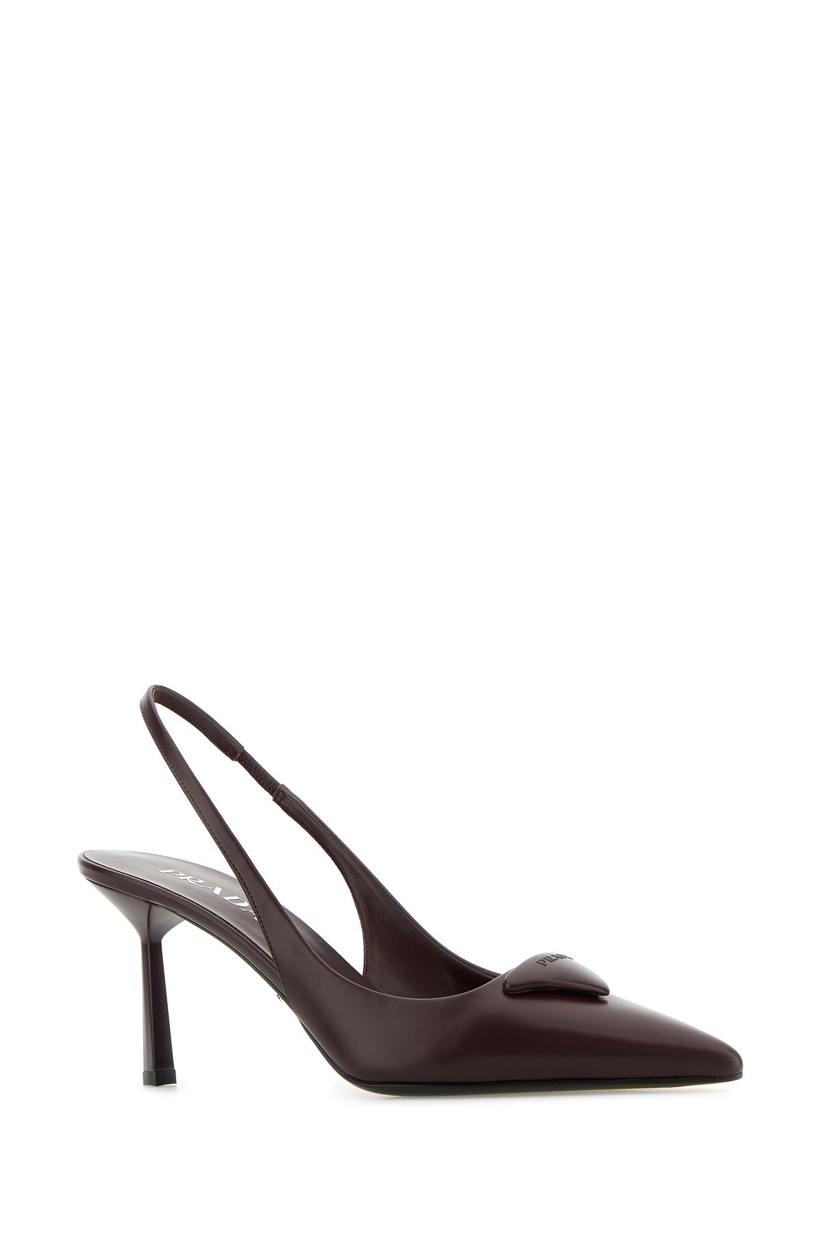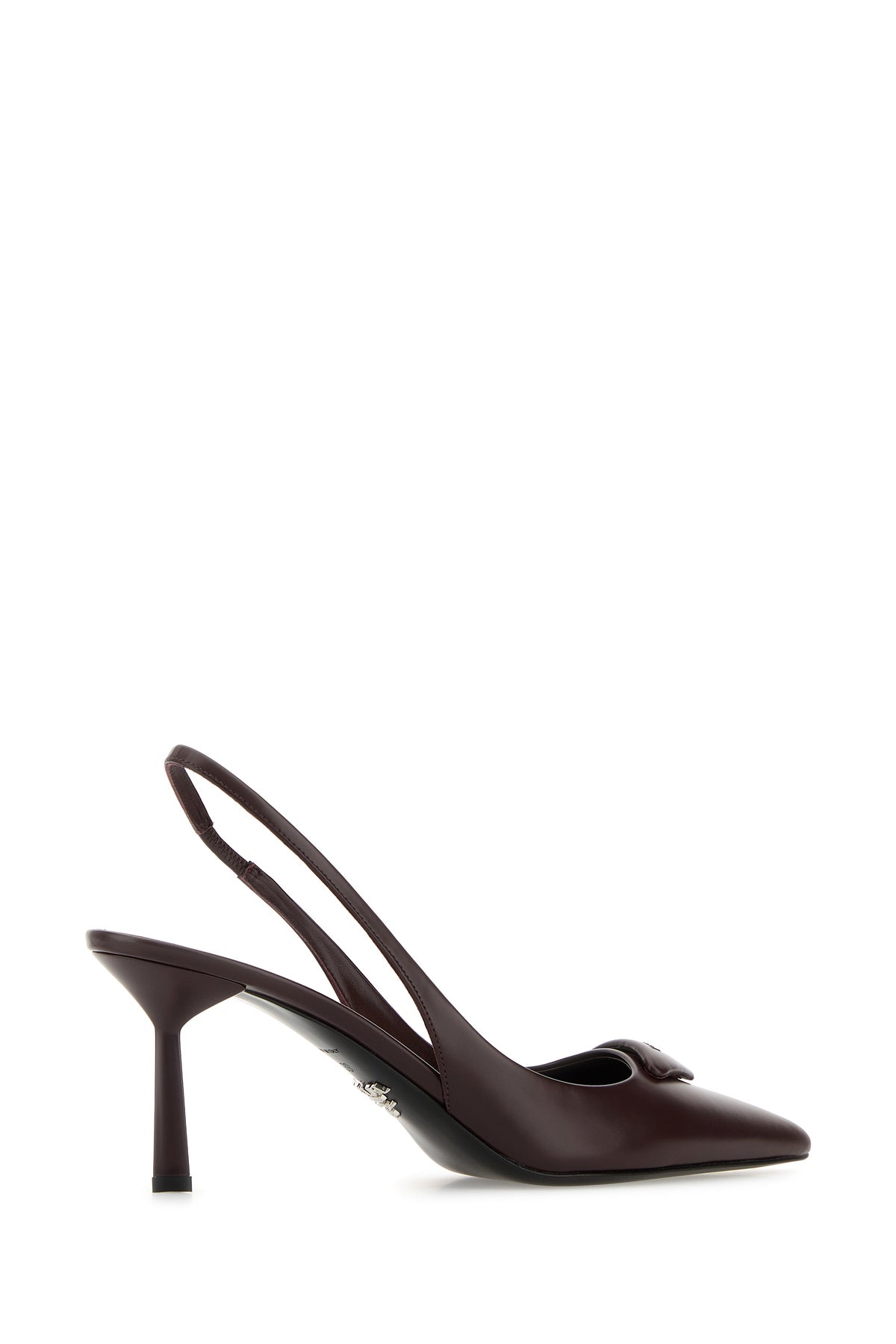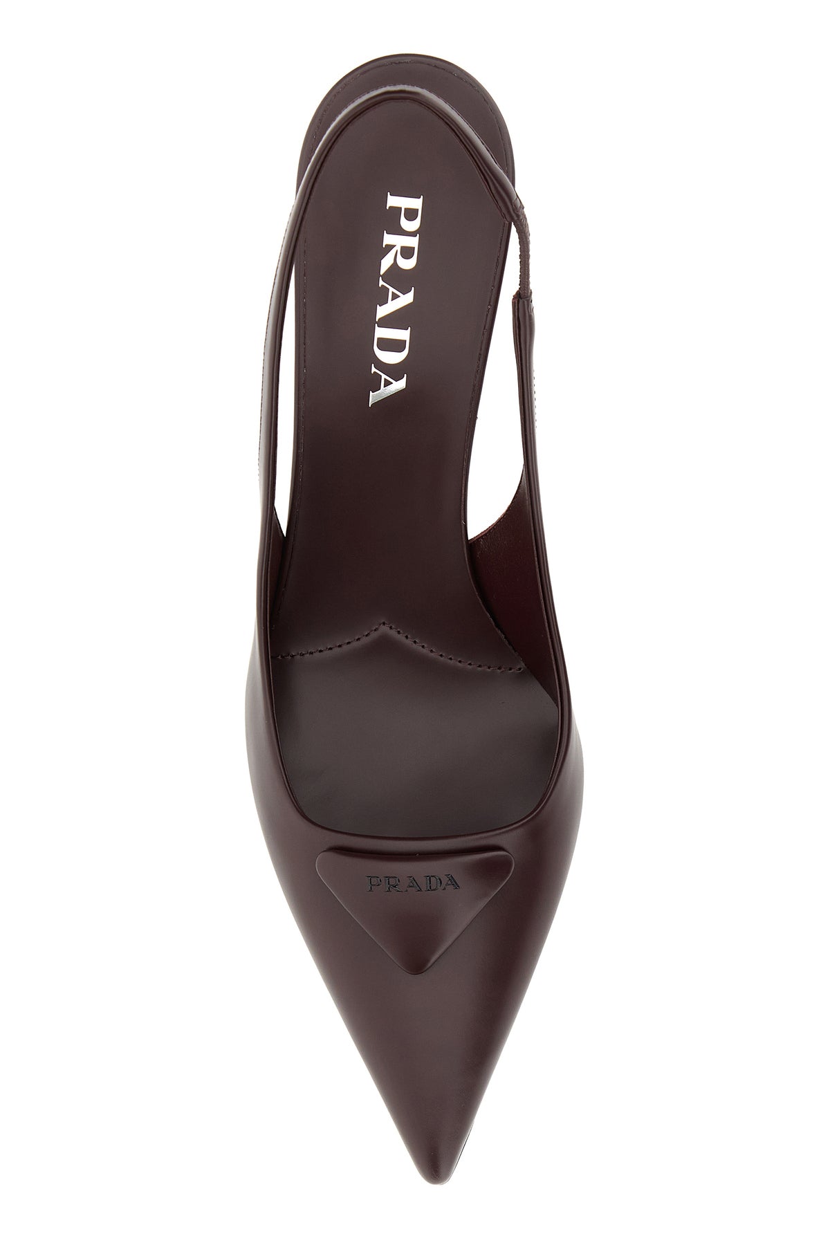 Slingback realizzate in pelle liscia arricchite da iconico triangolo in pelle tonale logato sulla parte frontale.