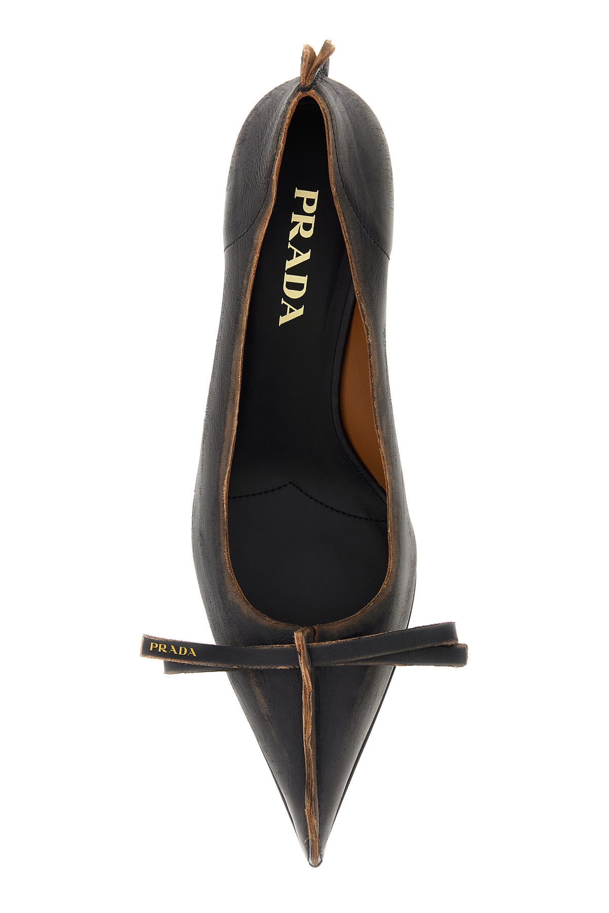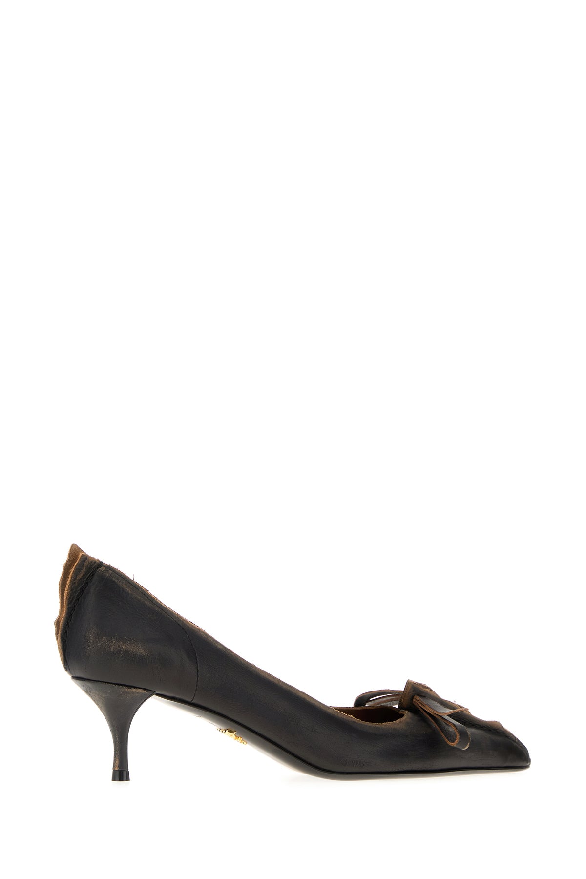 Scarpe con tacco realizzate in pelle di vitello ad effetto vintage caratterizzate da logo stampato sul fiocco decorativo sul collo del piede.