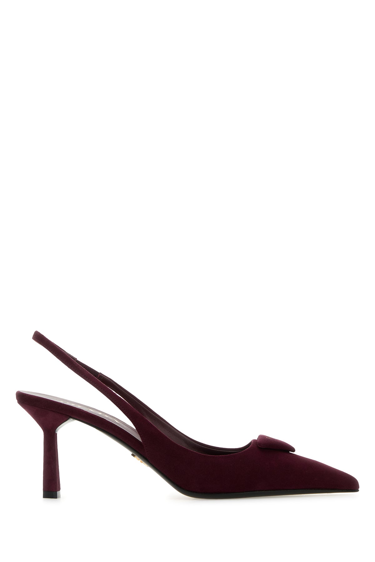 Slingback realizzate in pelle scamosciata arricchite da iconico triangolo in pelle logata sul collo del piede.