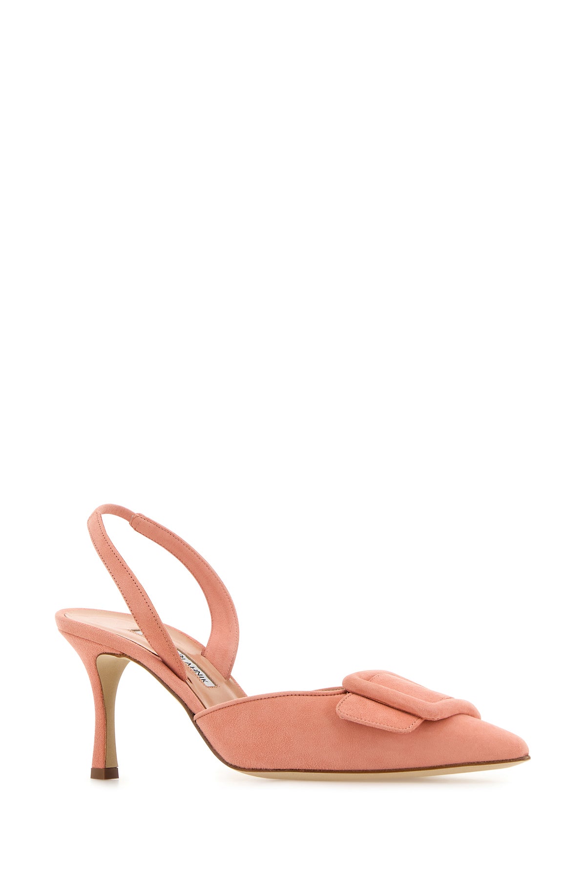 Slingback realizzate in pelle scamosciata arricchite da fibbia decorativa in pelle tonale sulla parte frontale.