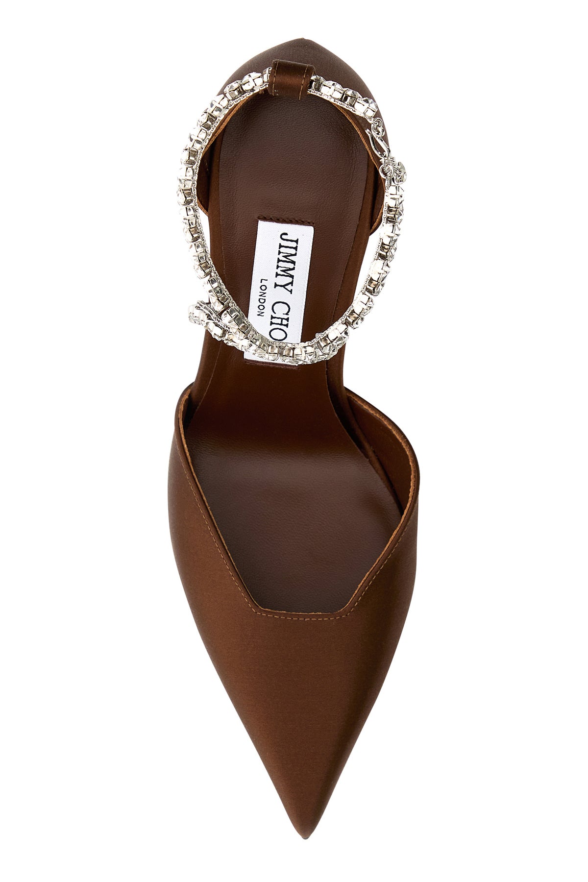 Scarpe con tacco realizzate in raso arricchite da cinturino gioiello sulla caviglia.
