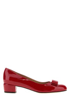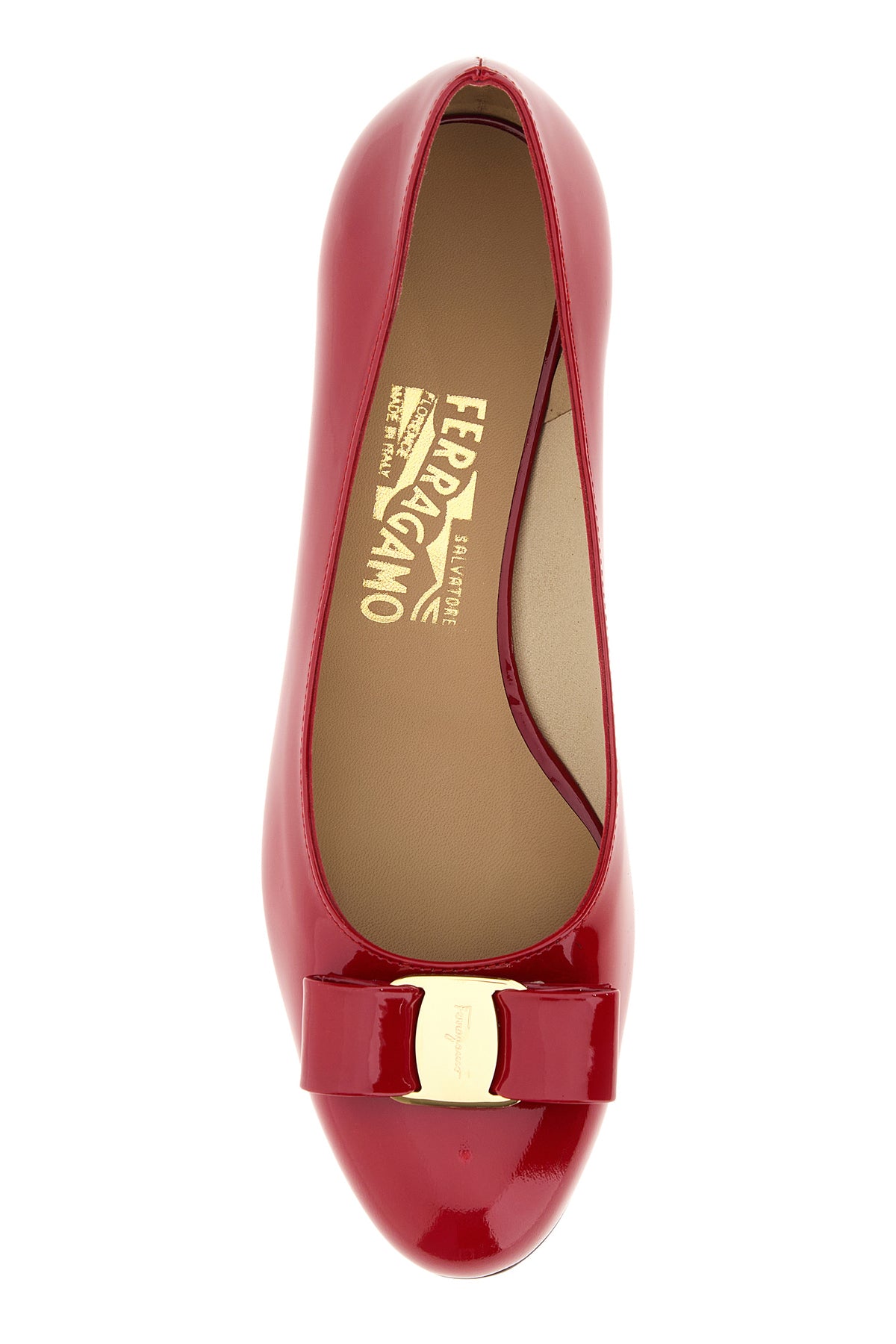 Scarpe con tacco realizzate in pelle verniciata arricchite da fiocco Vara sulla punta tonda.