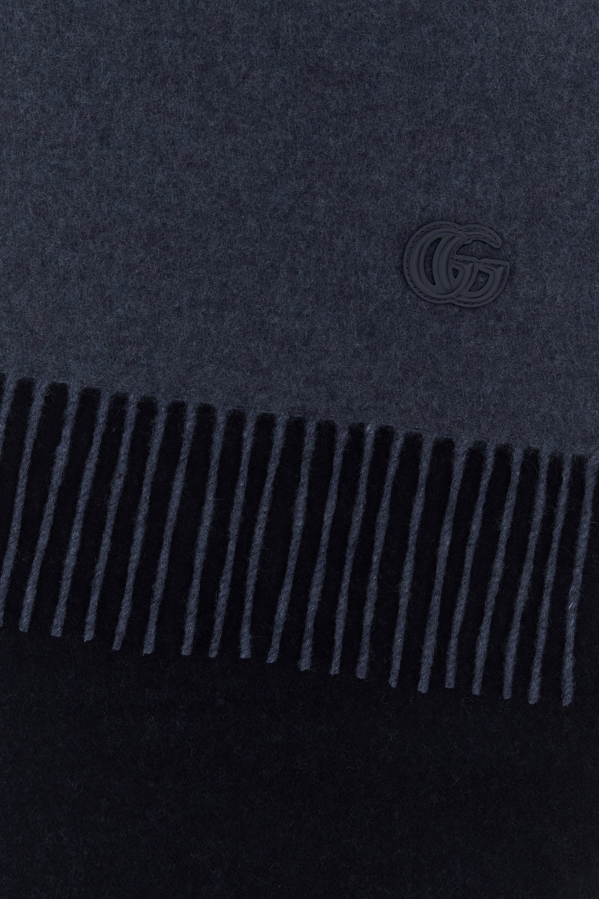 Sciarpa realizzata in puro cashmere arricchita da applicazione GG in pelle sulla parte frontale.