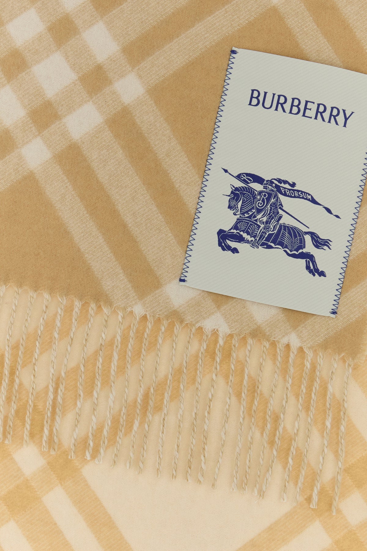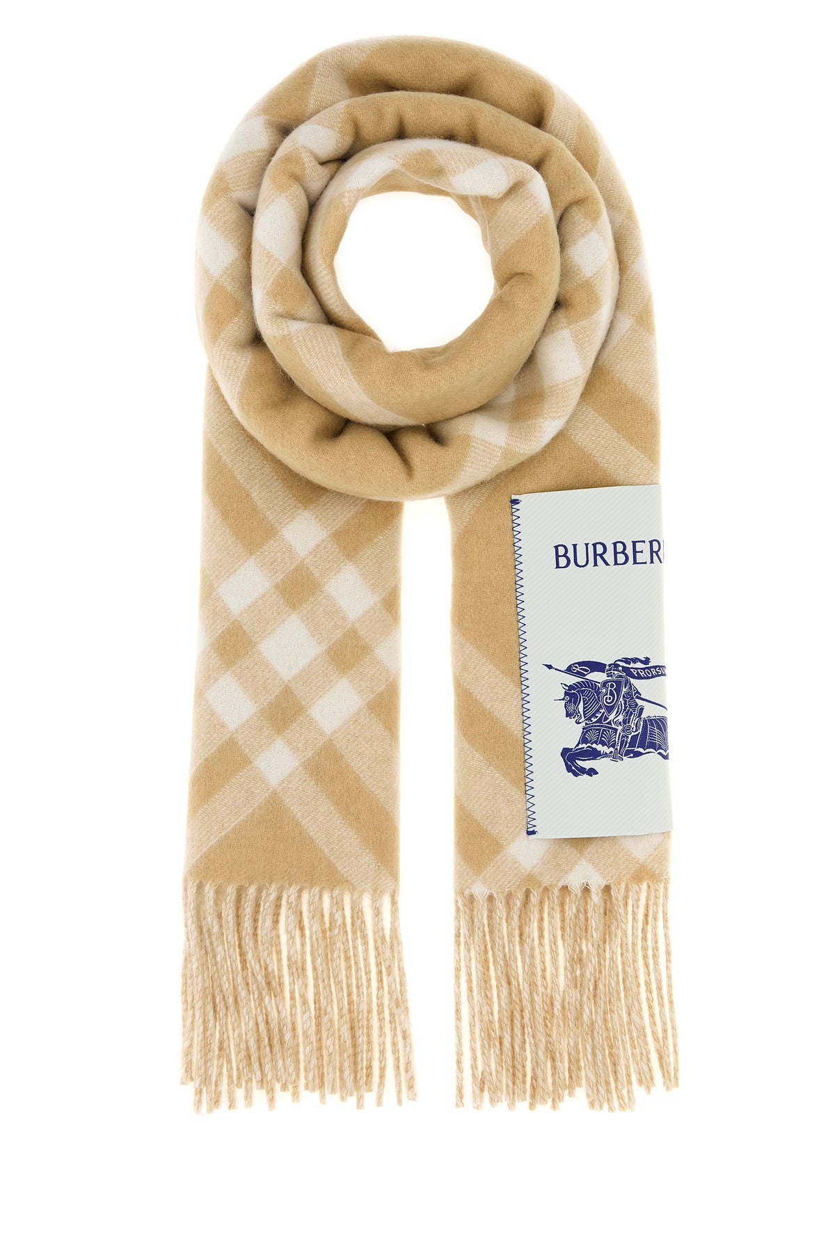 Sciarpa realizzata in puro cashmere caratterizzata da ricamo Burberry Check su tutta la superficie arricchita da etichetta Equestrian Knight sul fondo.
