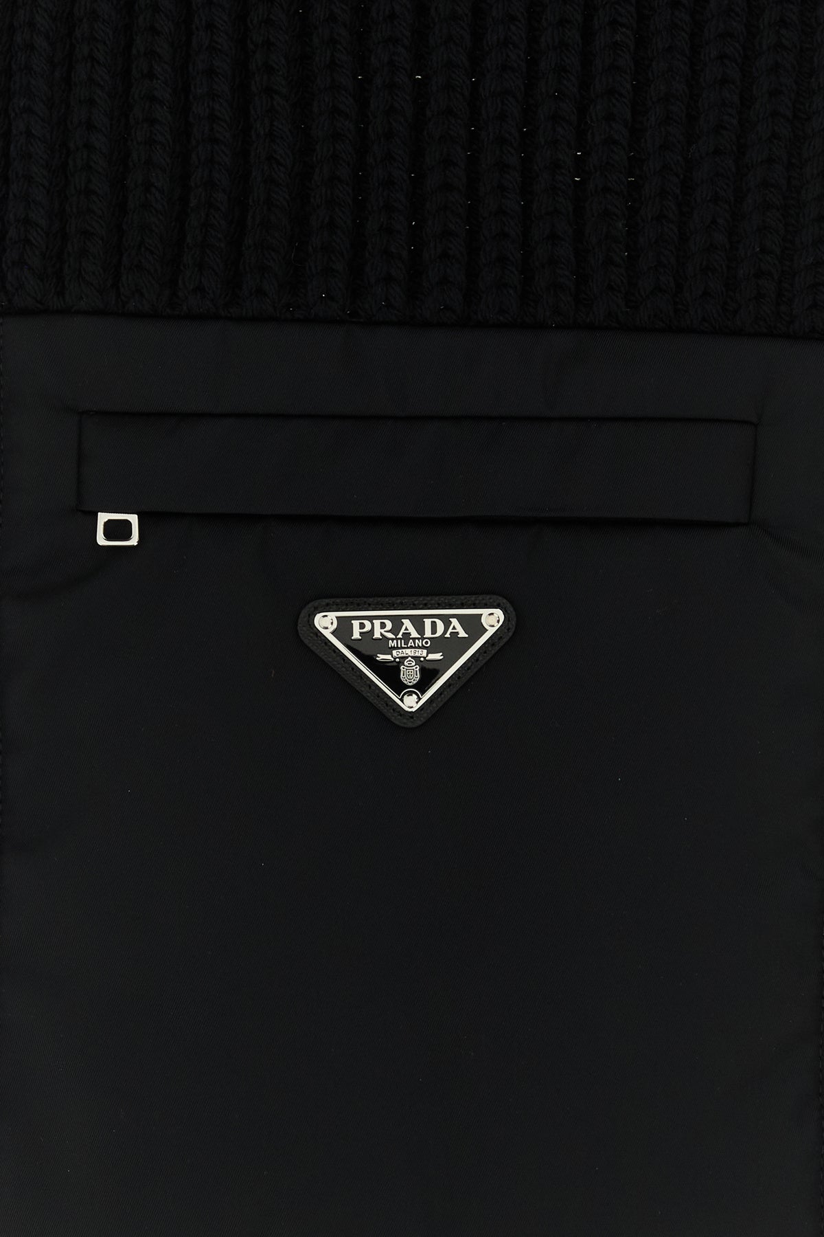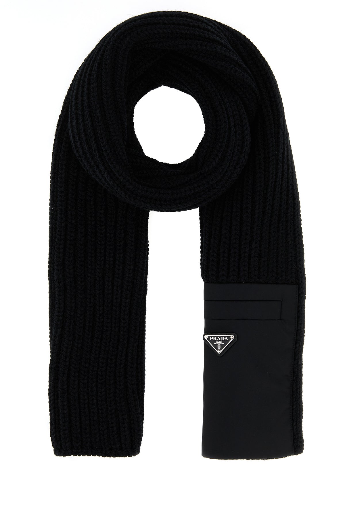 Sciarpa realizzata in pura lana vergine arricchita da iconico triangolo metallico logato sul fondo.