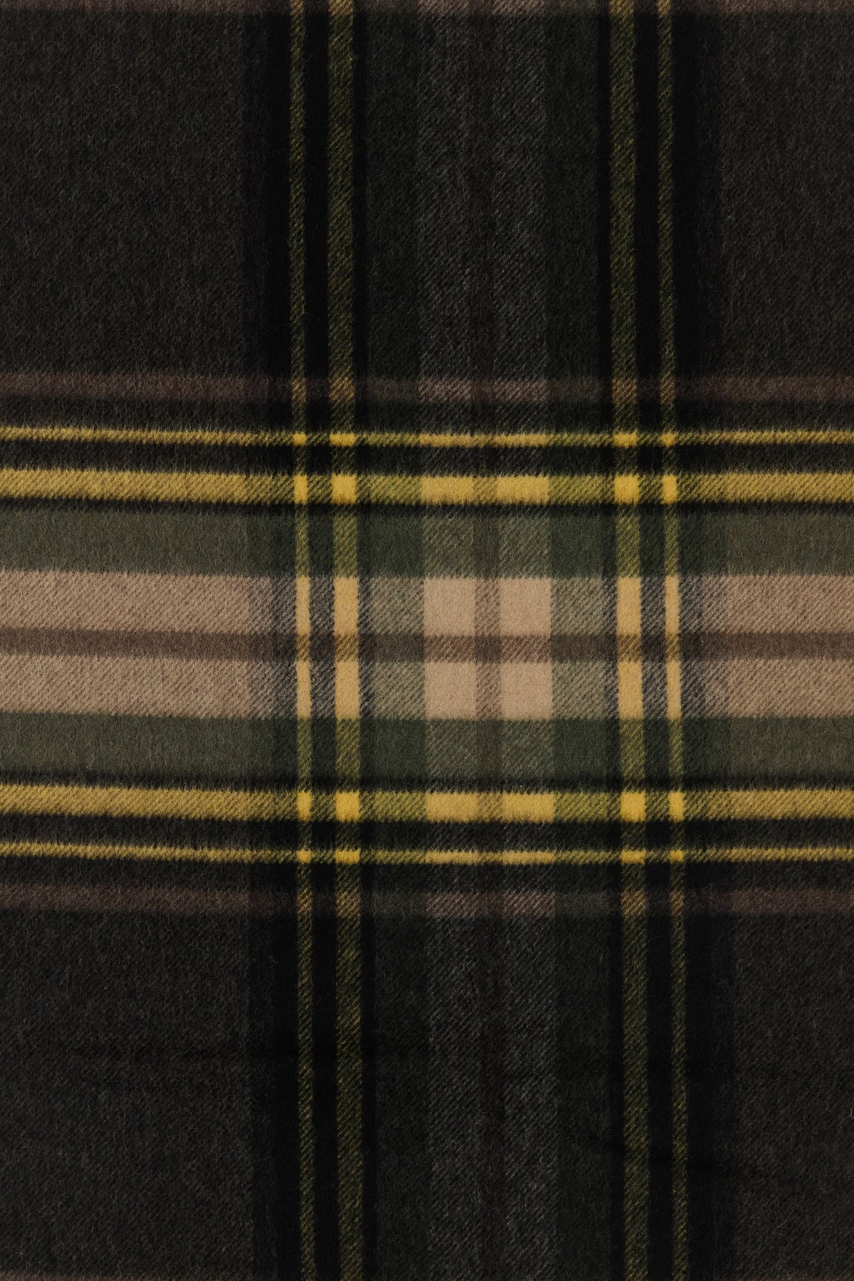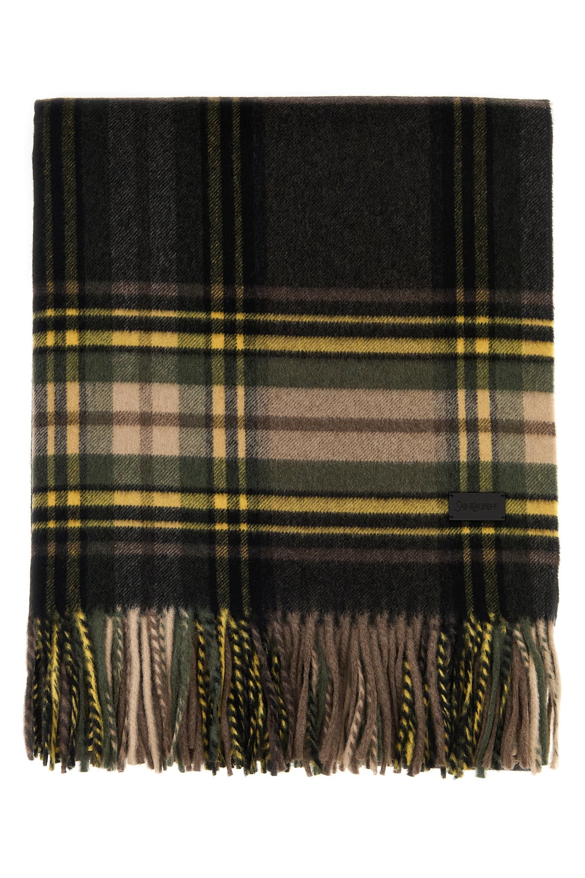 Sciarpa realizzata in cashmere e lana caratterizzata da ricamo a motivo tartan su tutta al superficie arricchita da etichetta logata in pelle sul fondo.