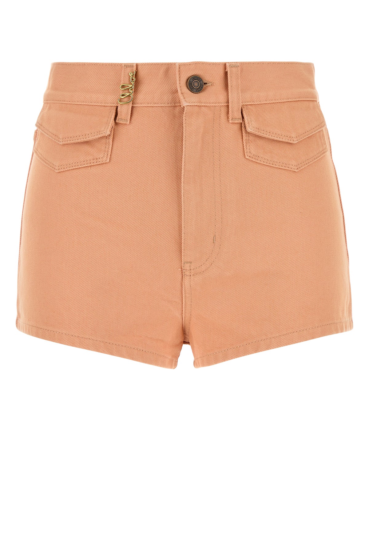 Shorts realizzati in denim di puro cotone arricchiti da dettaglio Chloe in metallo sulla parte superiore.