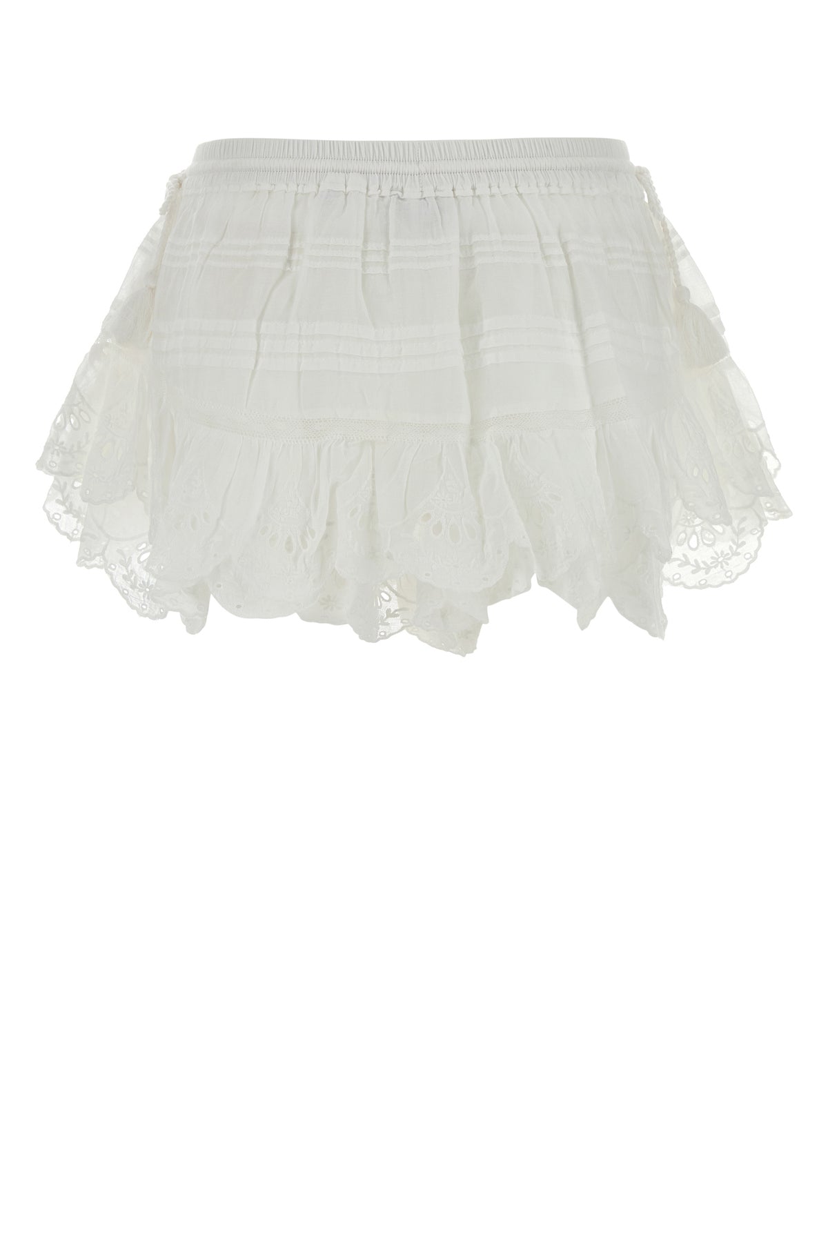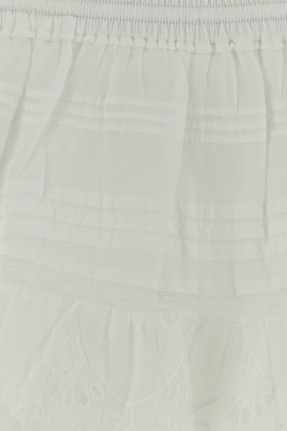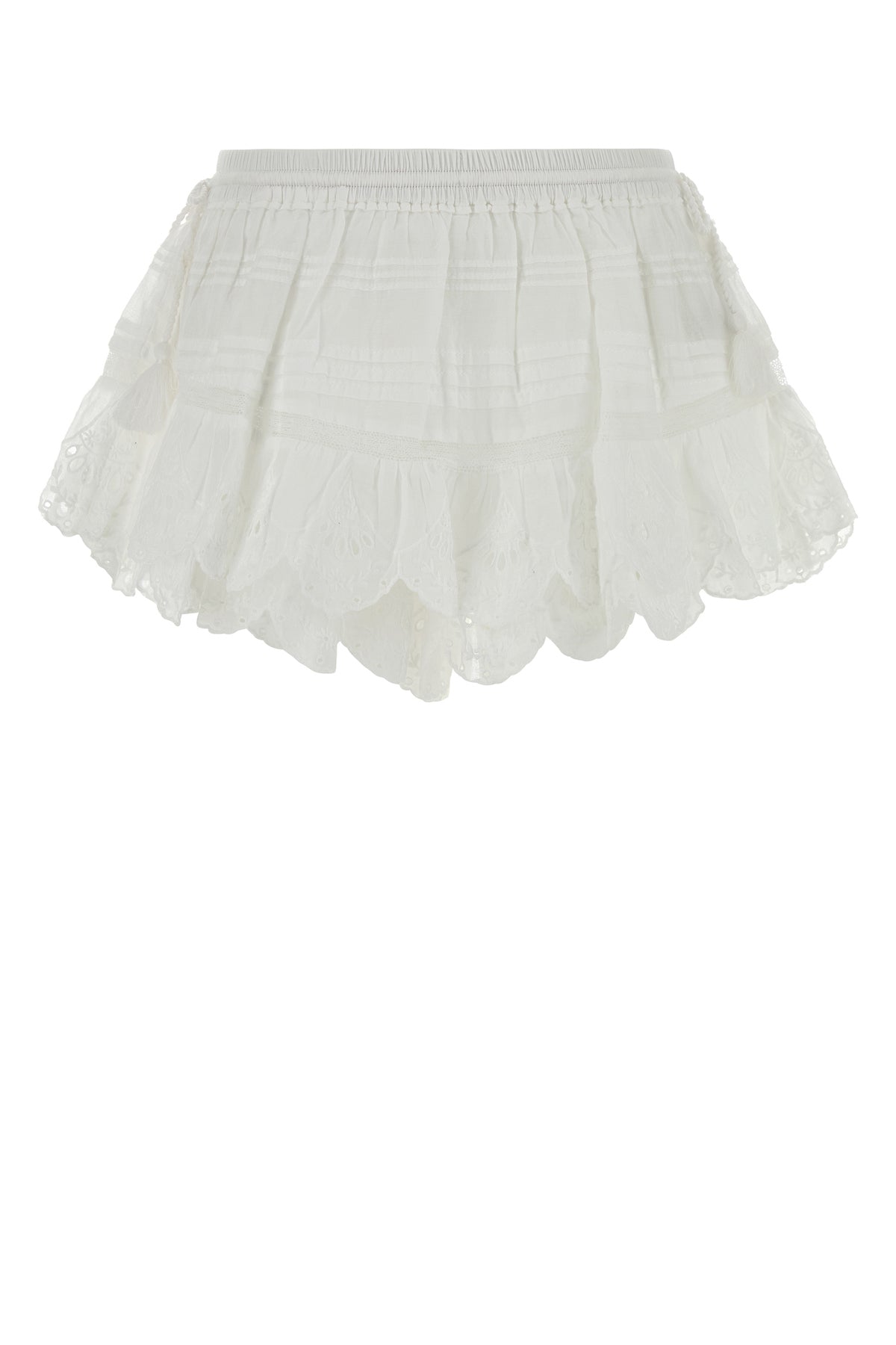 Shorts realizzati in puro cotone arricchiti da balze in pizzo sangallo sul fondo.