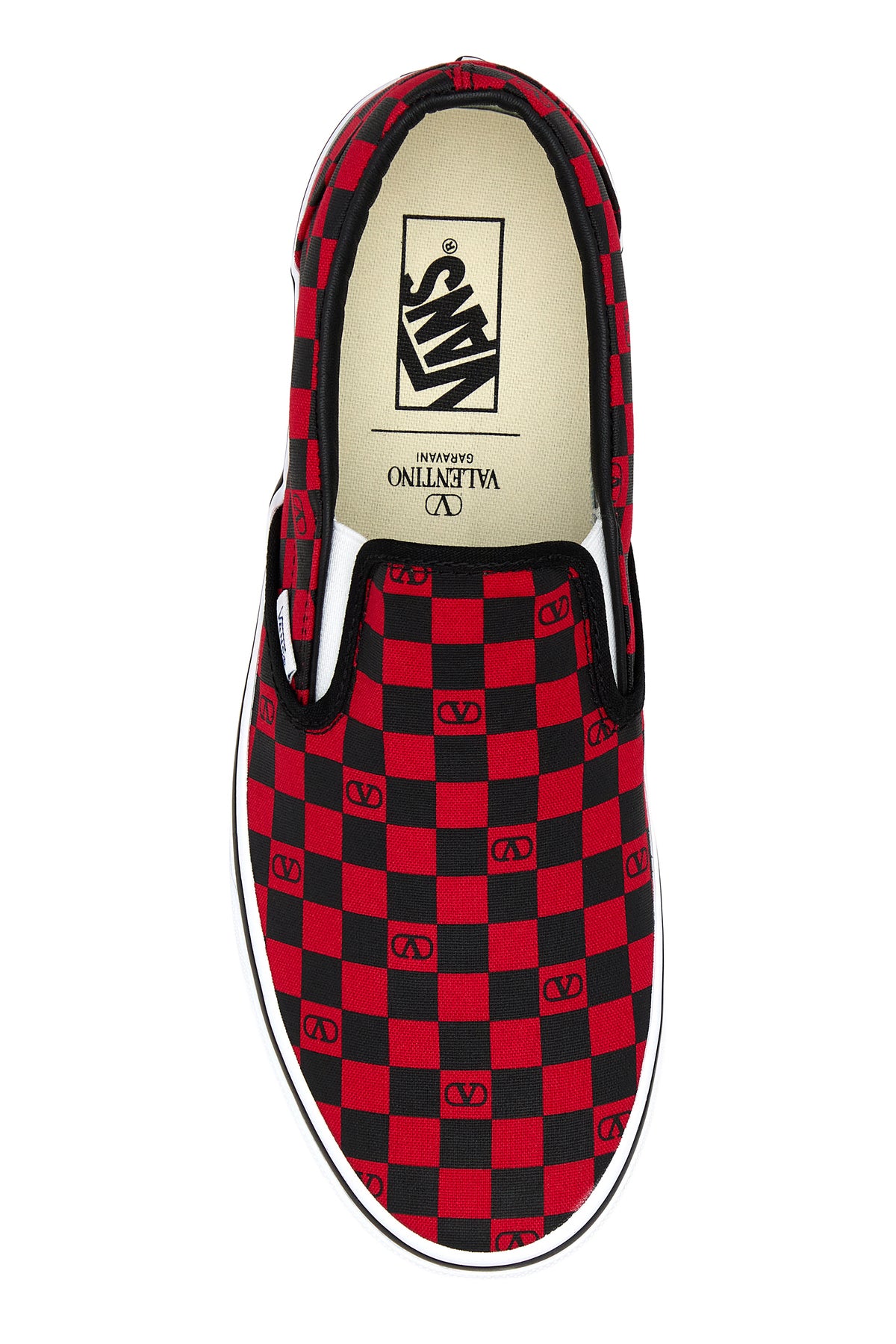 Slip-on create in collaborazione con Vans realizzate in tela caratterizzate da stampa Checkerboard su tutta la superficie arricchite da etichetta logata sul lato.