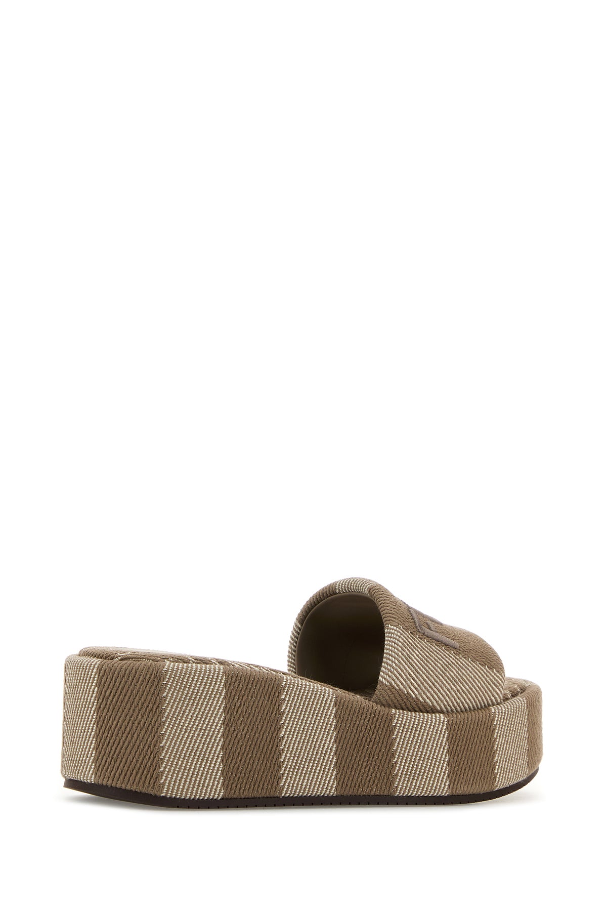 Slippers realizzate in tela caratterizzate da ricamo a righe su tutta la superficie e logo ricamato sul collo del piede.