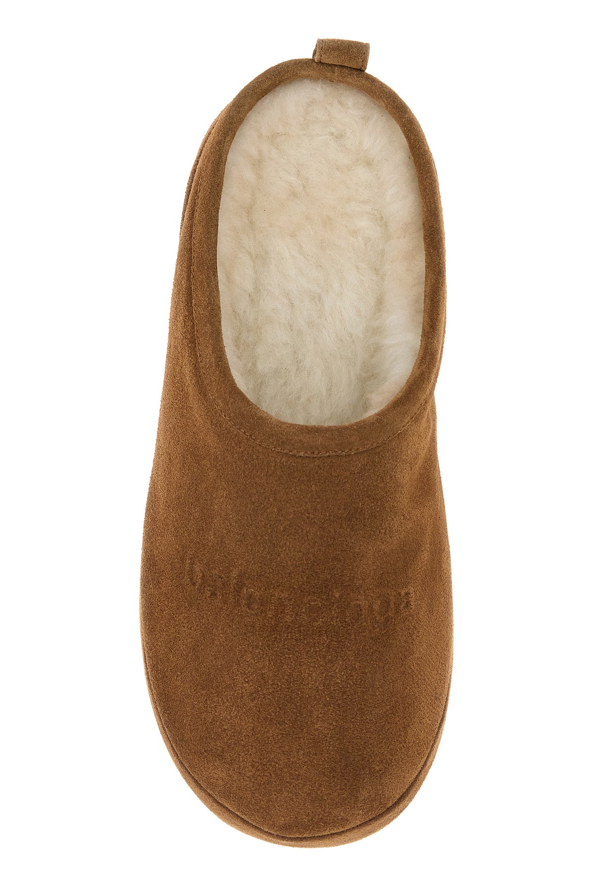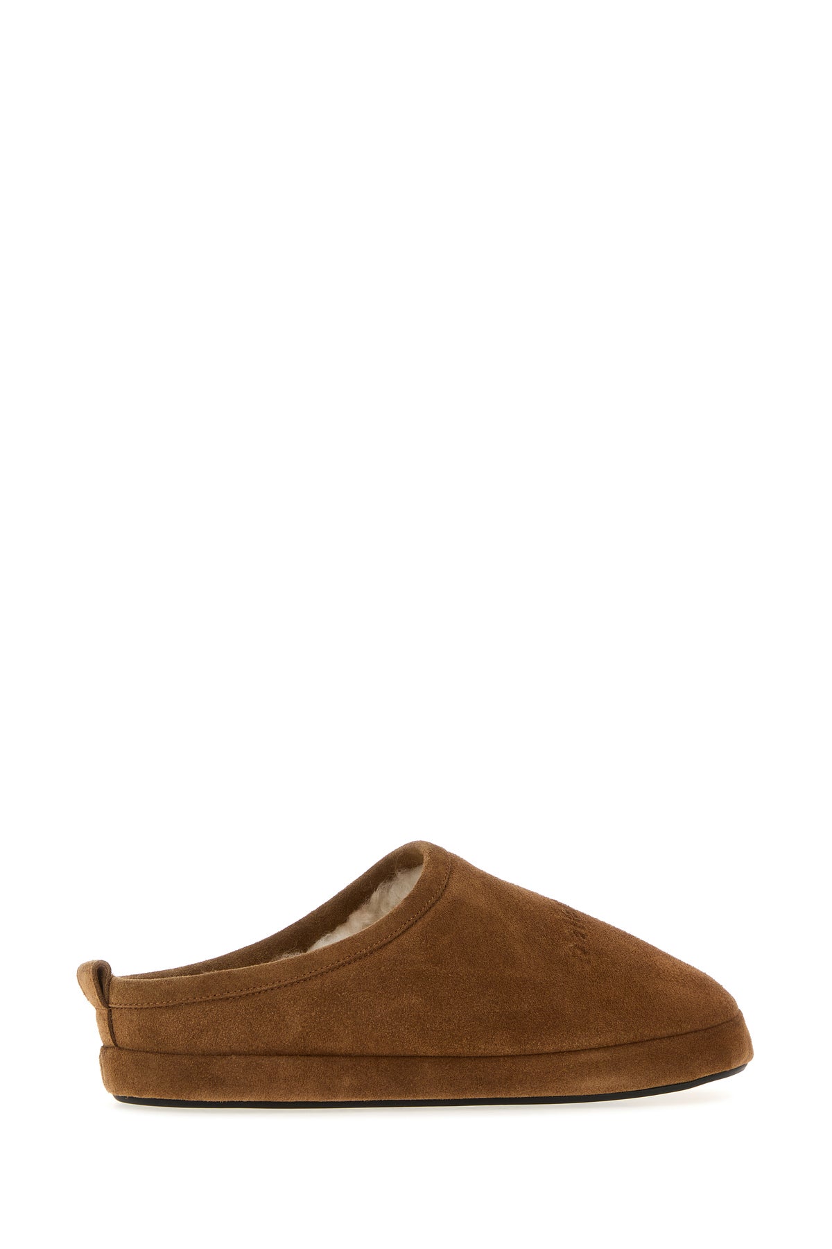 Slippers realizzate in pelle scamosciata caratterizzate da logo in rilievo sul collo del piede.