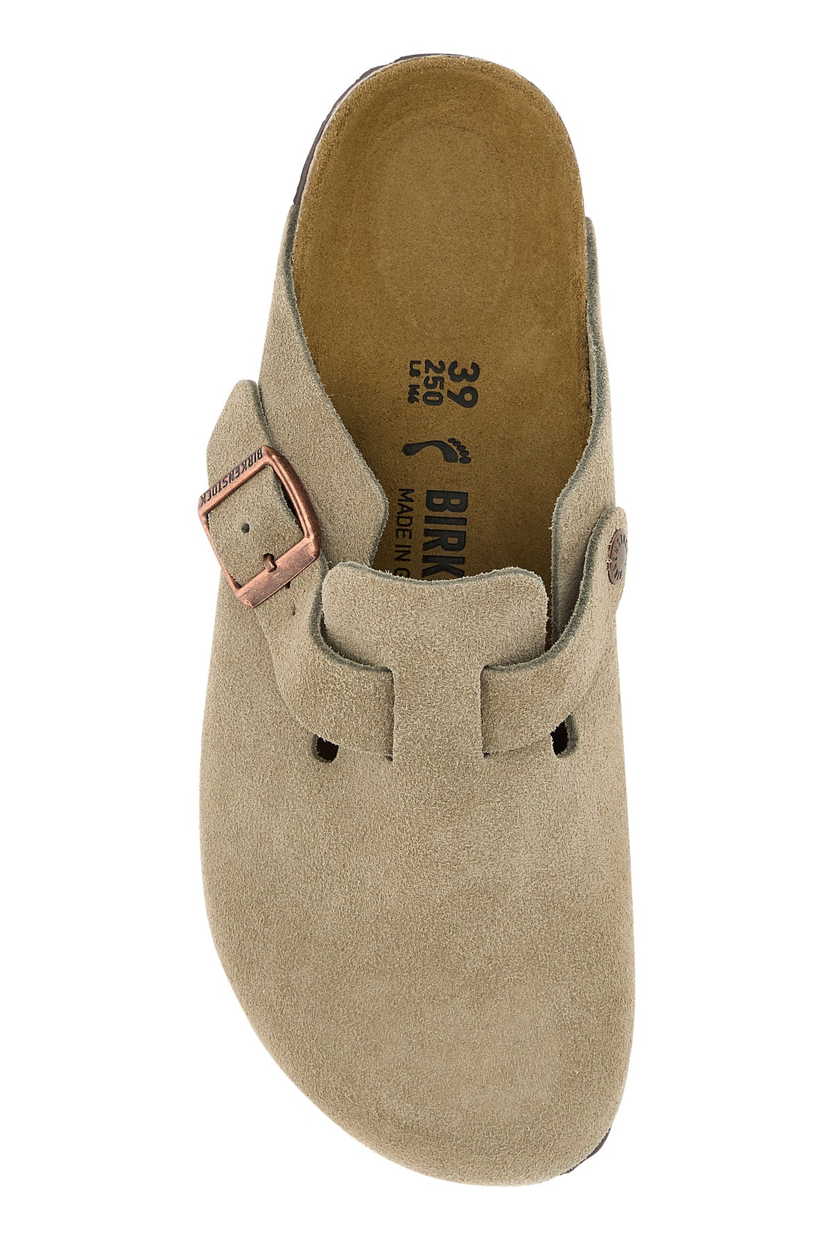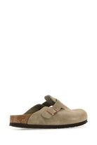 Slippers realizzate in pelle scamosciata caratterizzate da cinturino regolabile sul collo del piede.