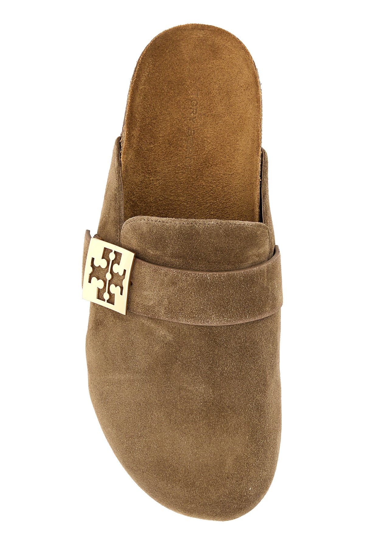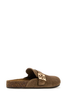Slippers realizzate in pelle scamosciata arricchite da dettaglio metallico logato sul cinturino.