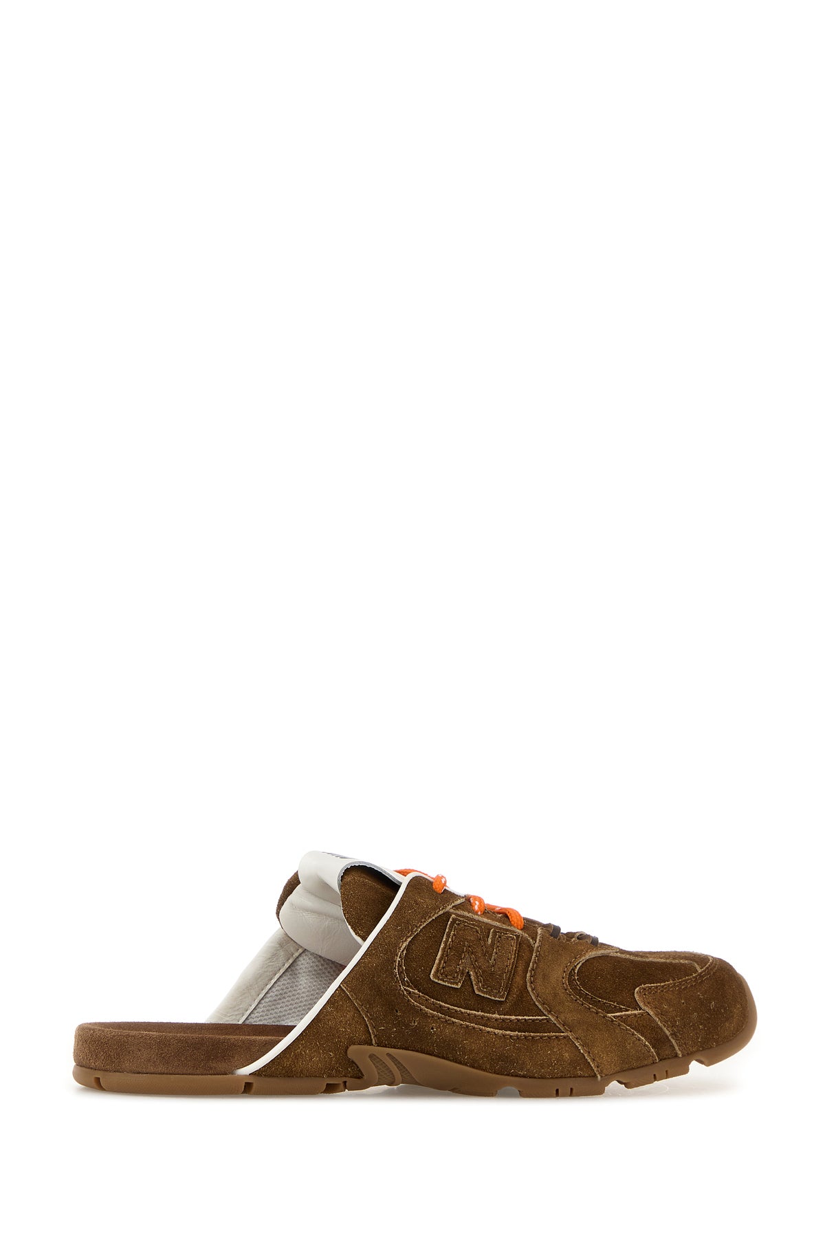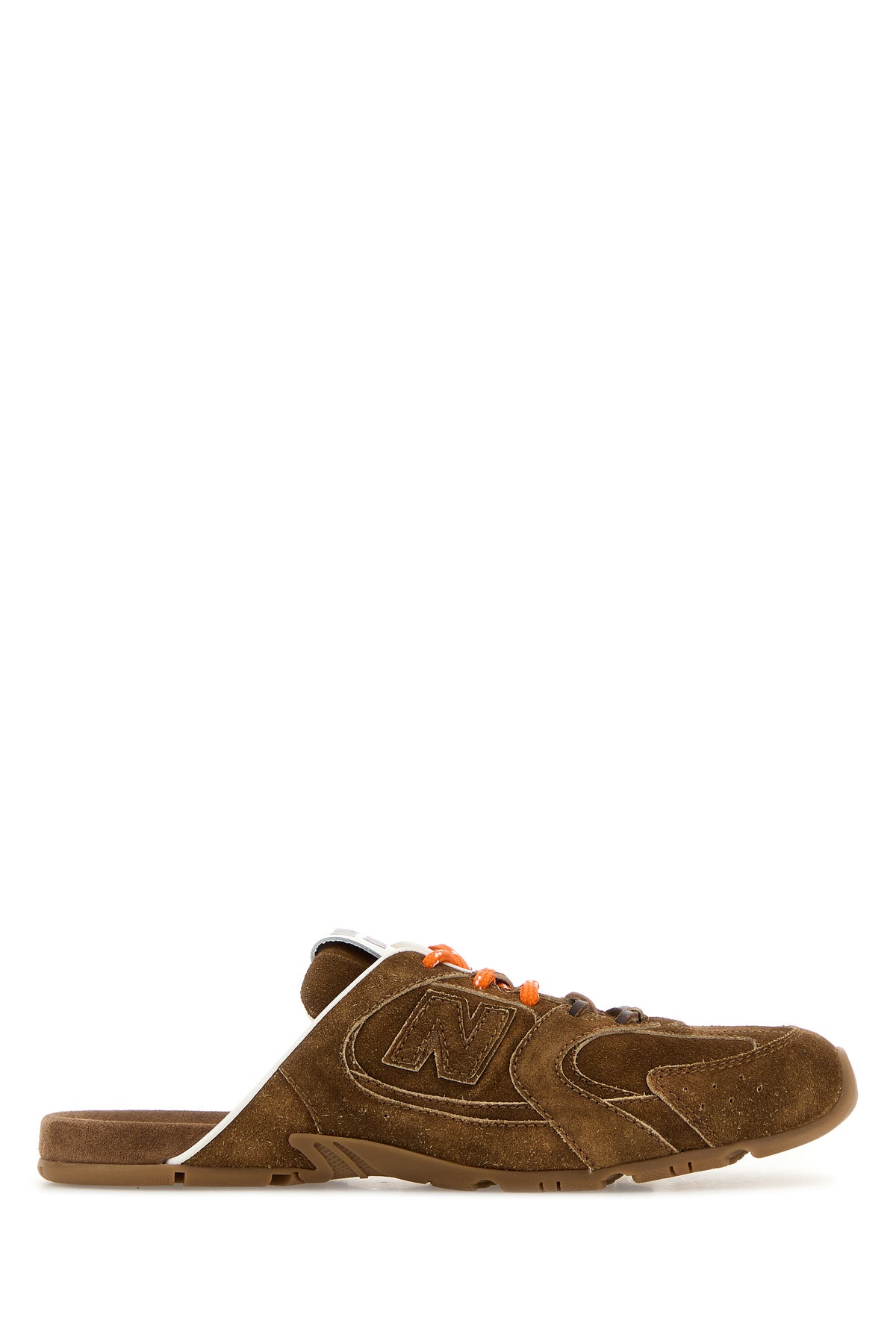 Slippers create in collaborazione con New Balance realizzate in pelle scamosciata arricchite da applicazioni logate sui lati.