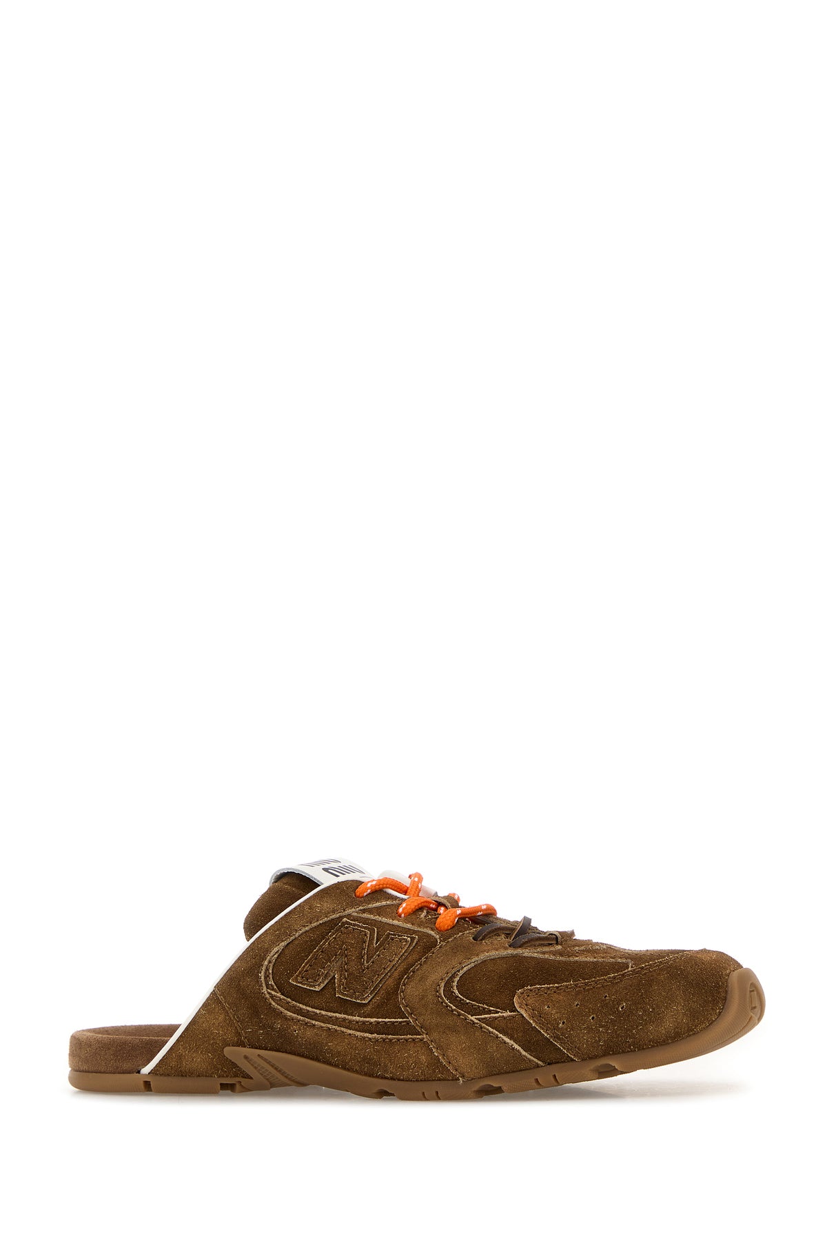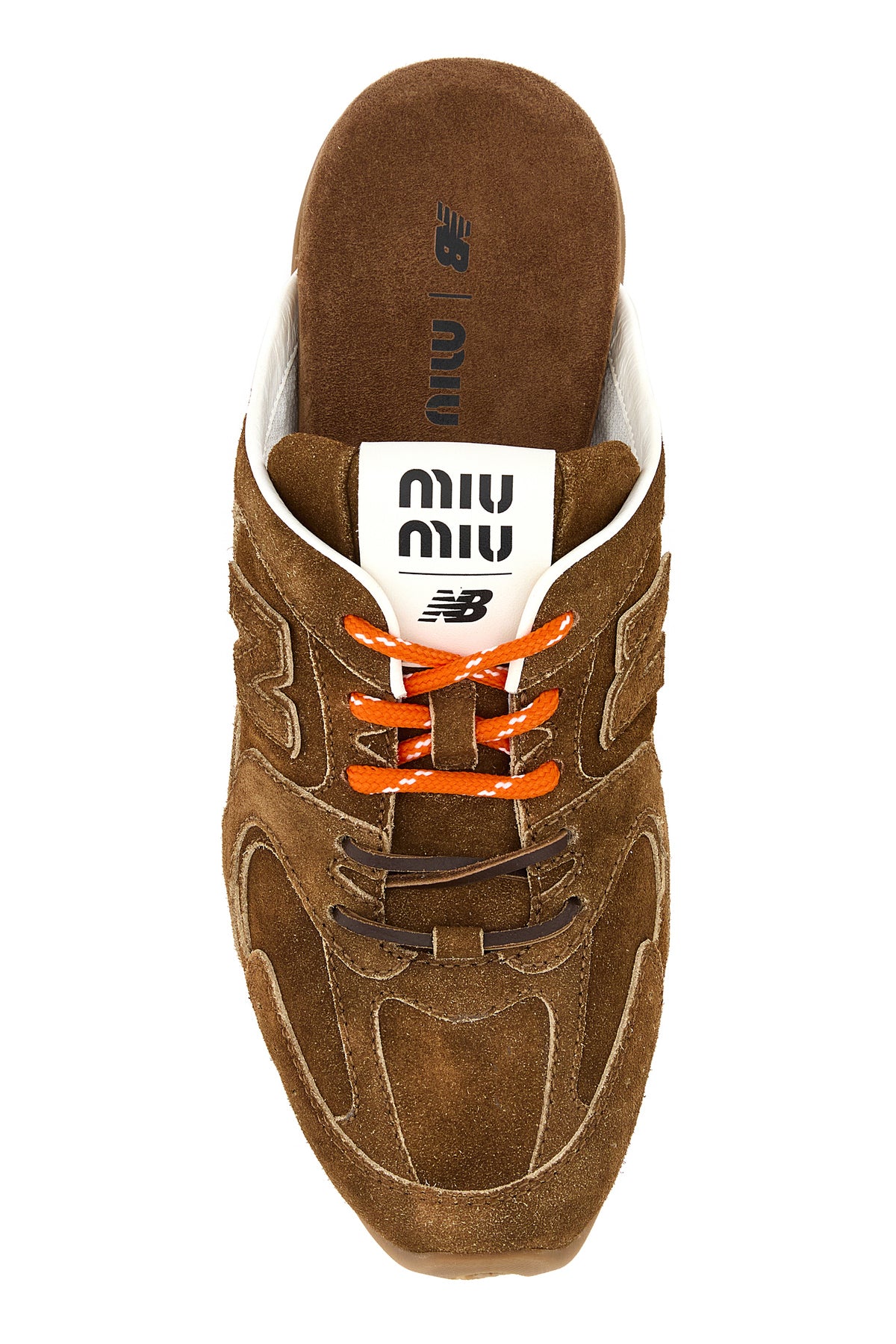 Slippers Miu Miu X New Balance in pelle scamosciata biscotto