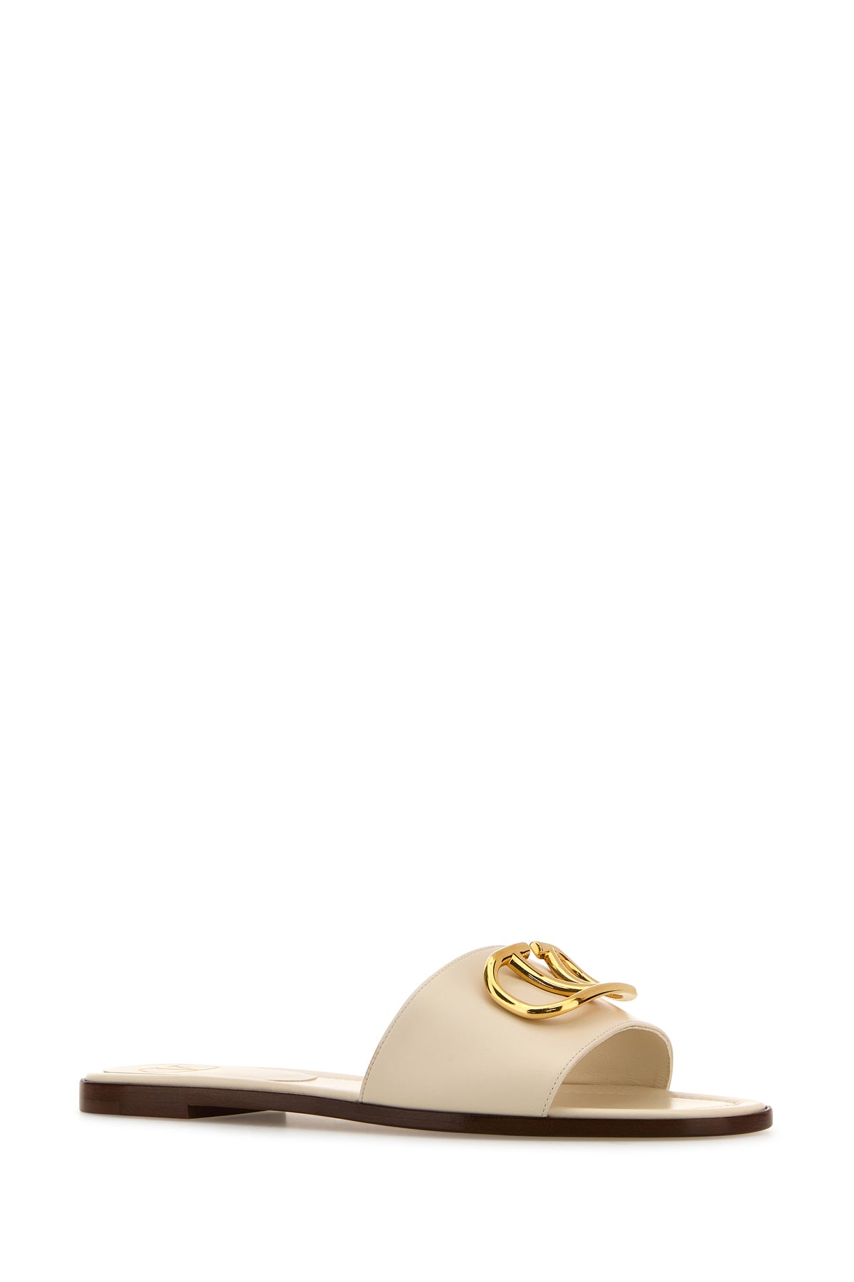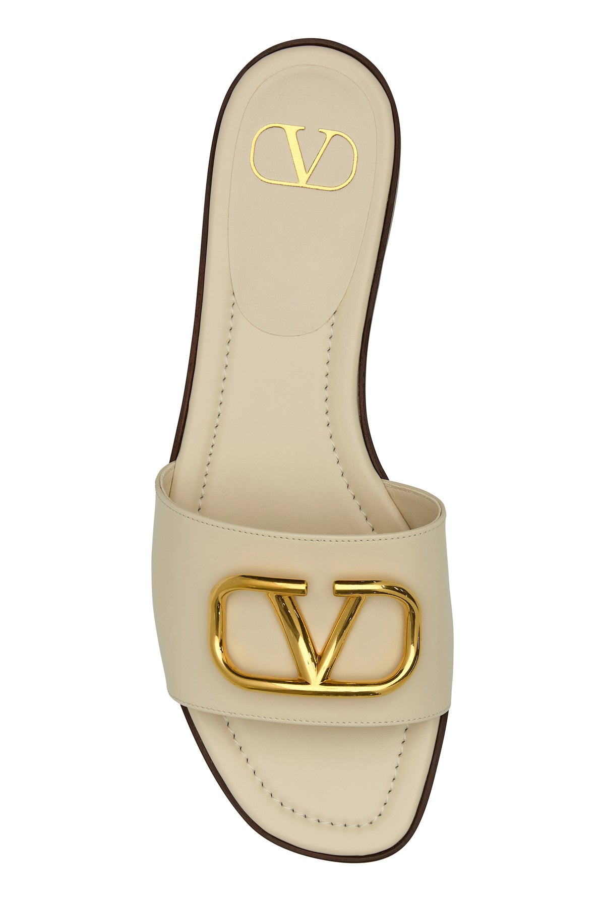 Slippers realizzate in pelle arricchite da dettaglio metallico VLogo Signature sul collo del piede.