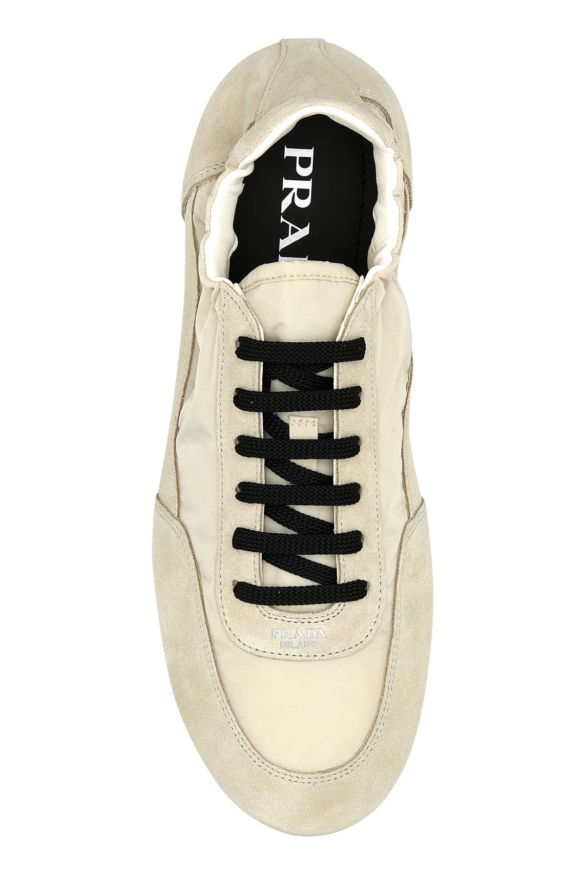 Sneakers realizzate in Re-Nylon e pelle scamosciata caratterizzate da logo stampato laminato sul collo del piede.