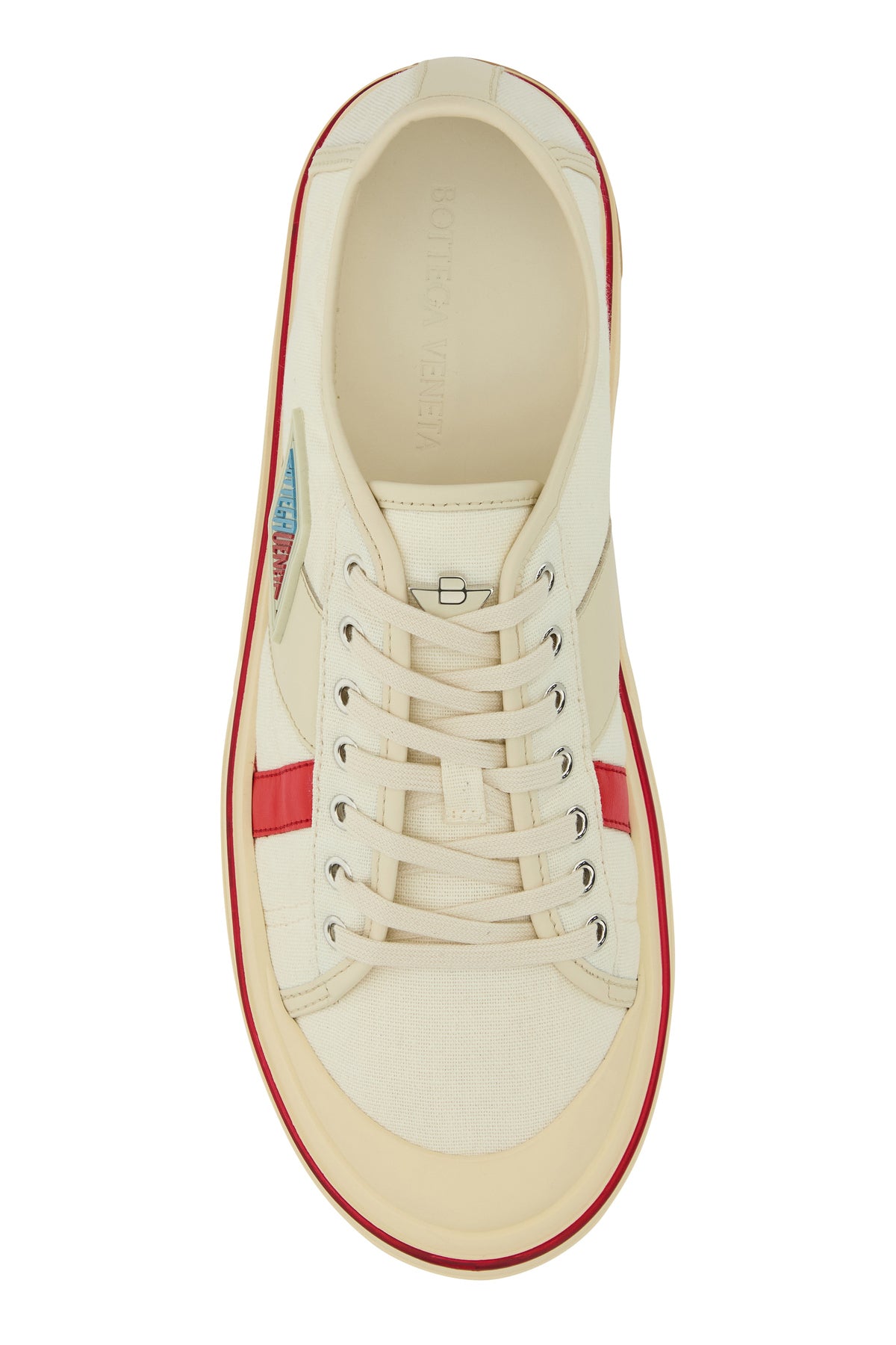 Sneakers realizzate in tela arricchite da applicazione logata gommata sul lato.