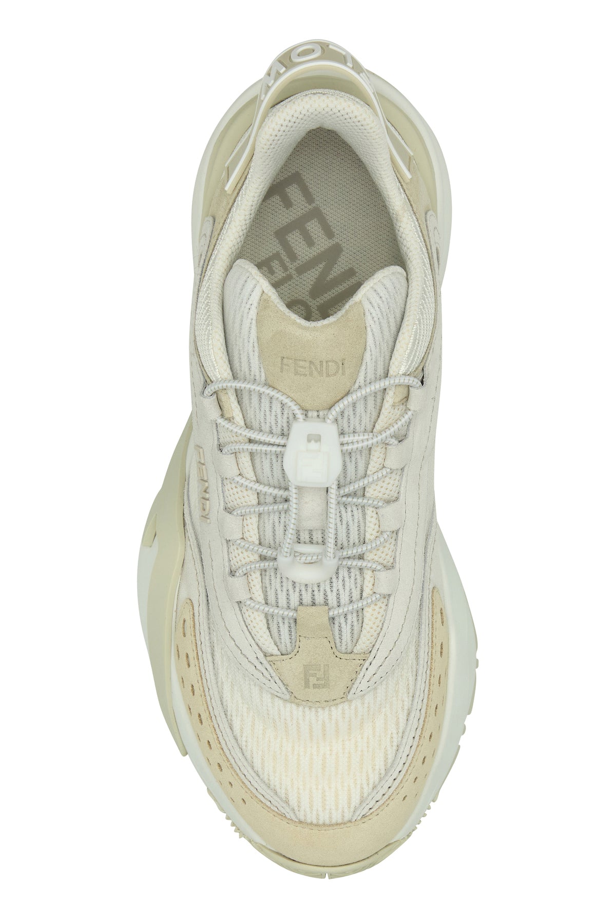 Sneakers Fendi Flow avorio in rete e pelle scamosciata