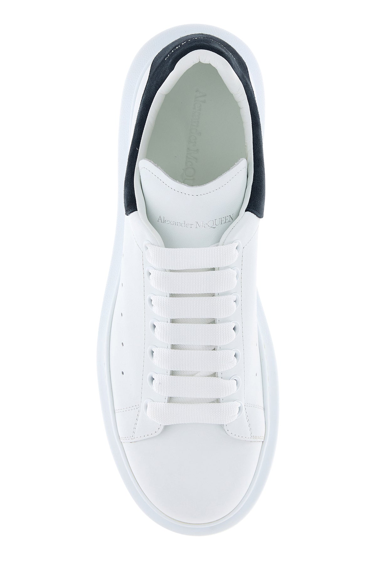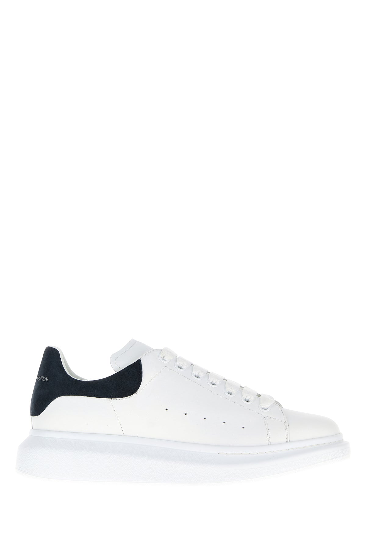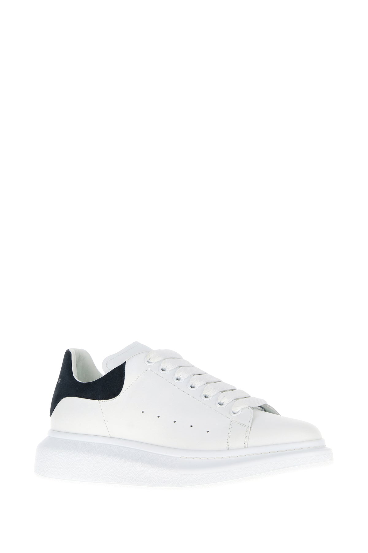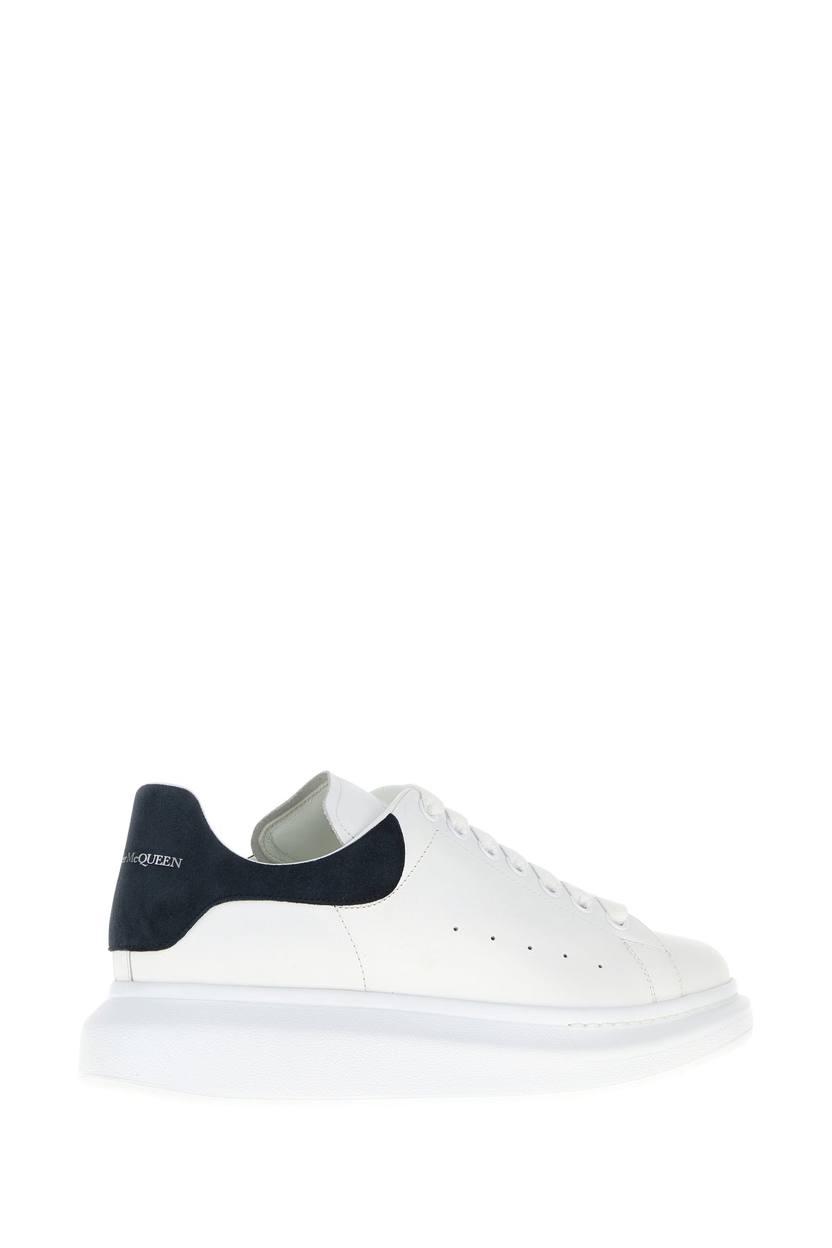 Sneakers in pelle bianca con tallone in pelle scamosciata blu scuro