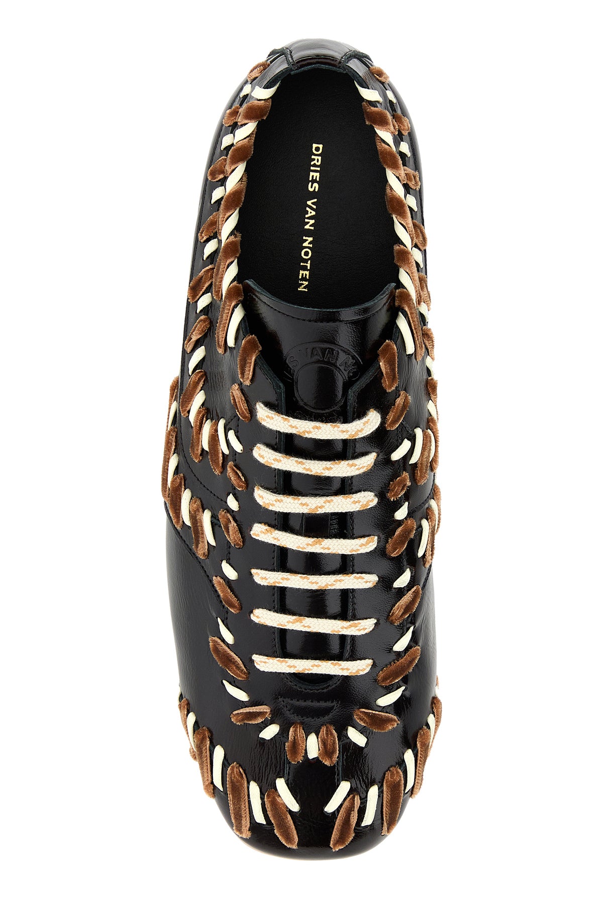 Sneakers realizzate in pelle dal finish lucido arricchite da stringatura decorativa su tutta la superficie.