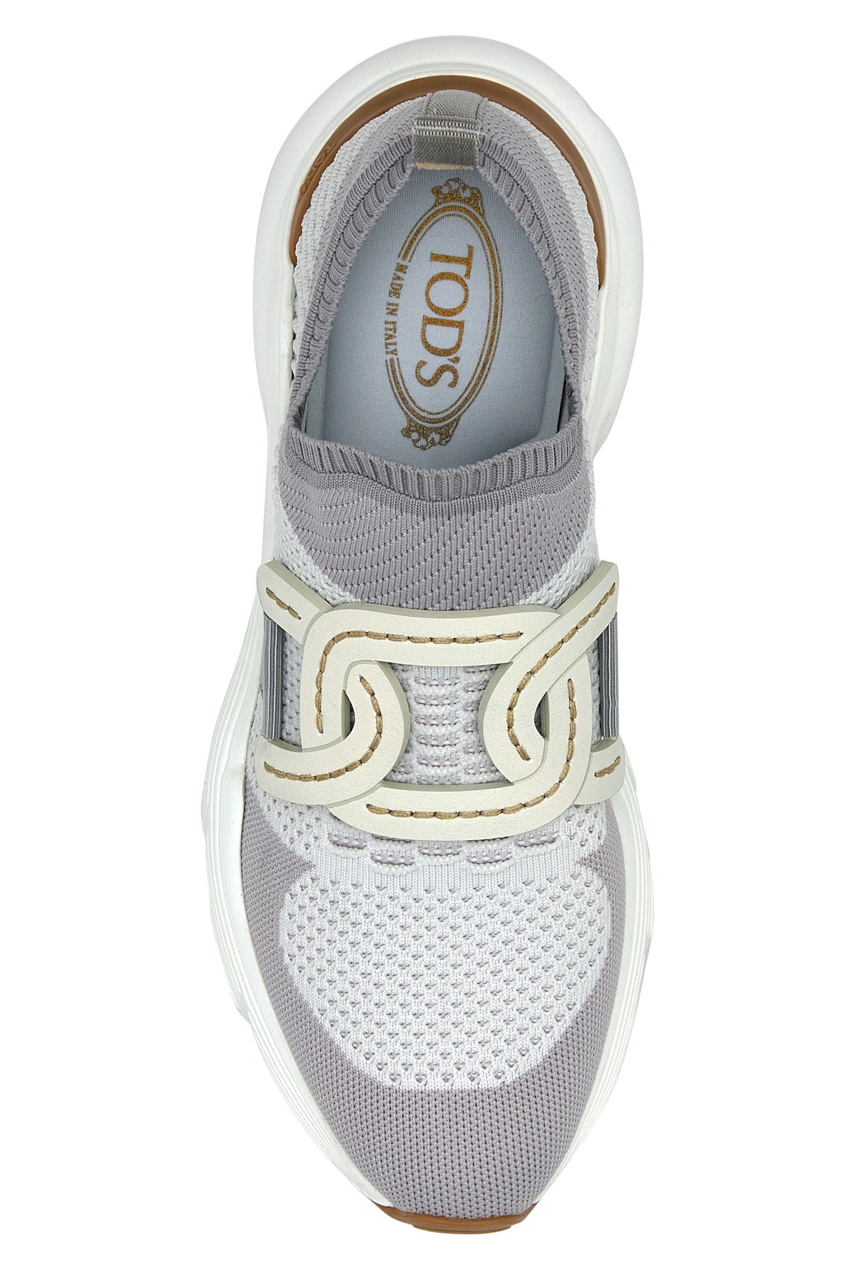 Sneakers realizzate in tessuto arricchite da applicazione Catena in pelle sul collo del piede.
