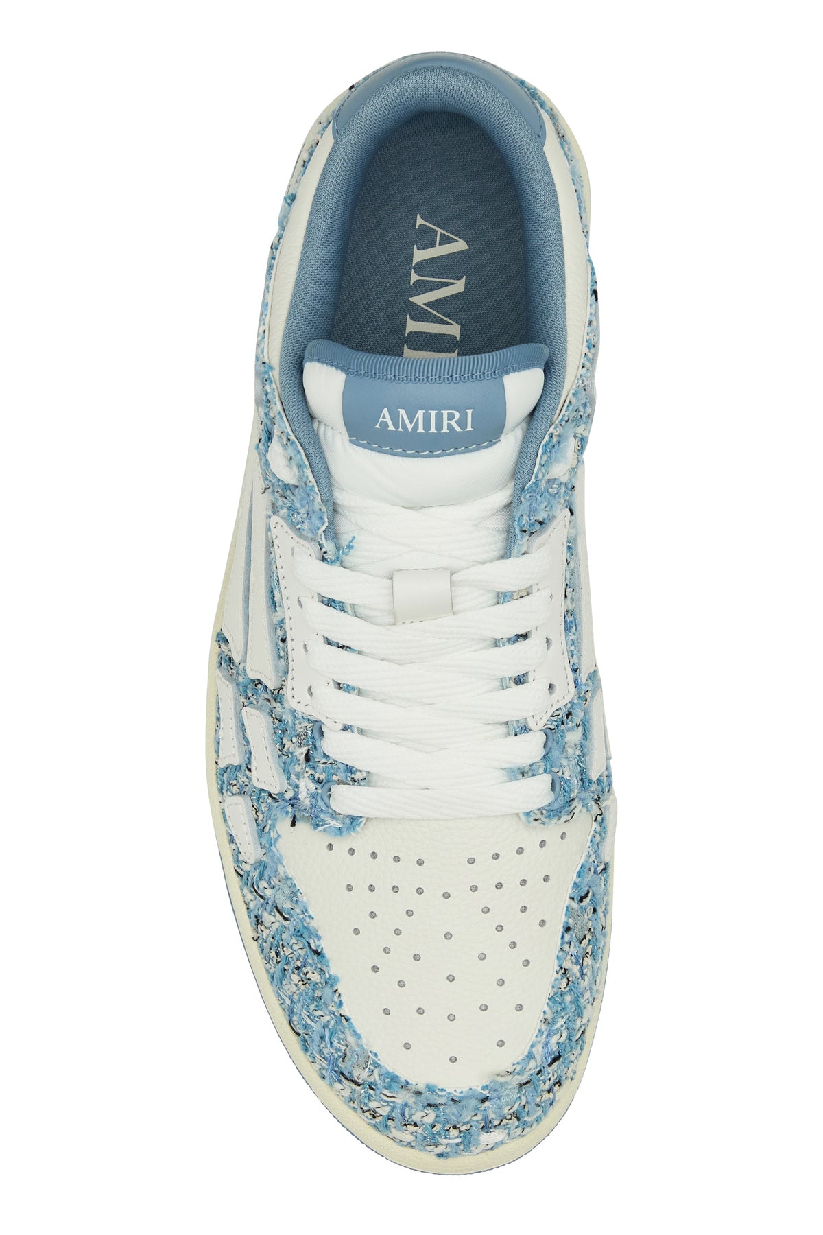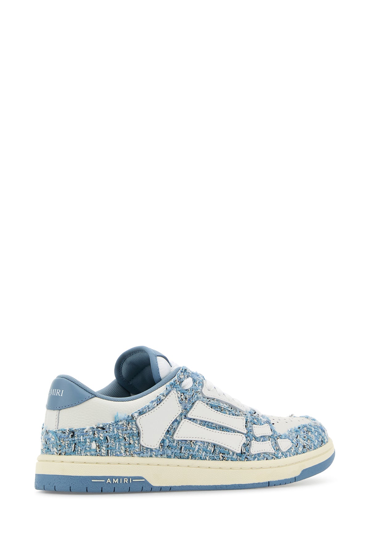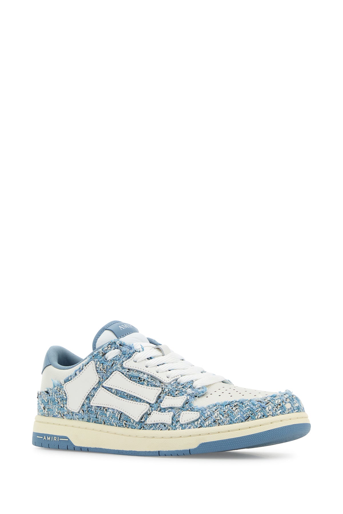 Sneakers realizzate in bouclé con inserti in pelle martellata arricchite da particolari applicazioni sui lati.