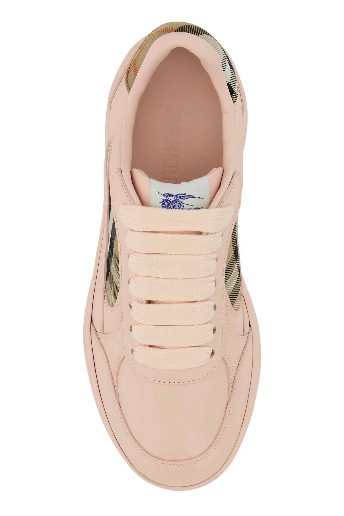 Sneakers realizzate in pelle lisca caratterizzate da inserti in tessuto Burberry Check sui lati e sul retro.