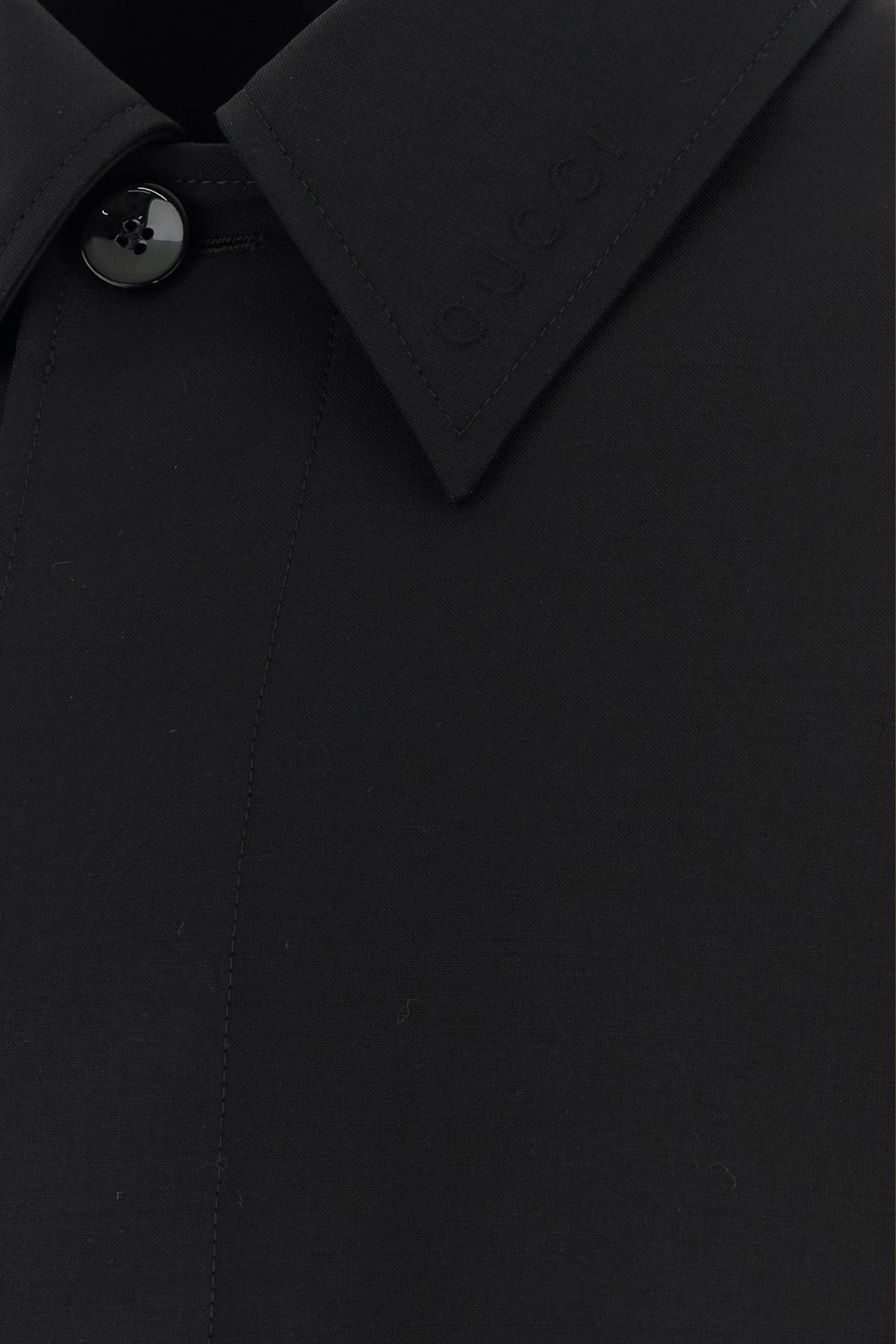 Soprabito realizzato in pura lana caratterizzato da motivo Gucci in rilievo sul colletto.