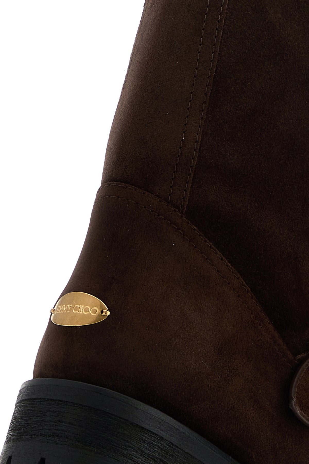 Stivaletti realizzati in pelle scamosciata arricchiti da targhetta metallica logata sul retro.