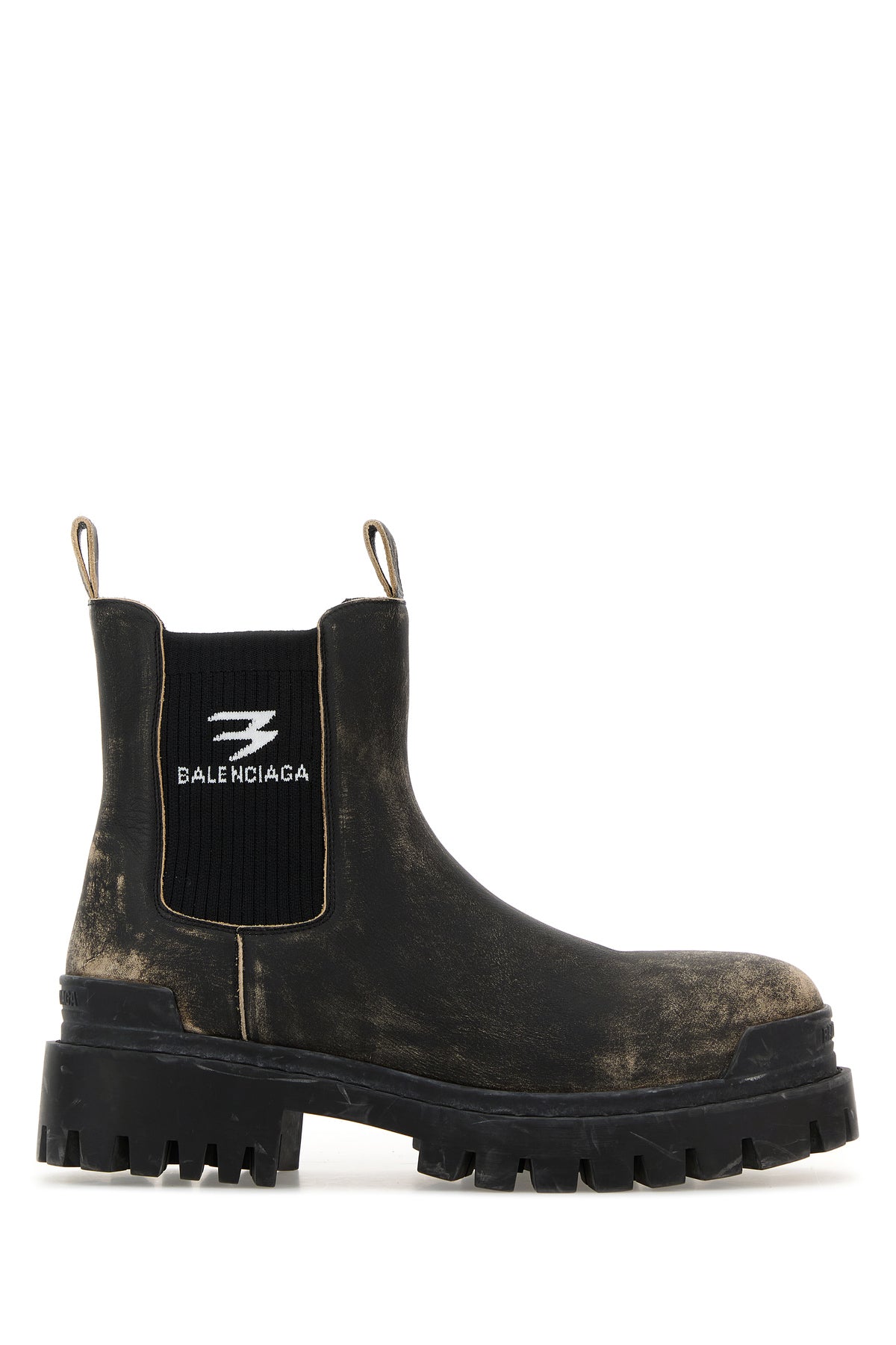 Stivaletti realizzati in pelle ad effetto vintage caratterizzati da logo in rilievo sulla punta e logo ricamato sugli inserti elastici laterali.