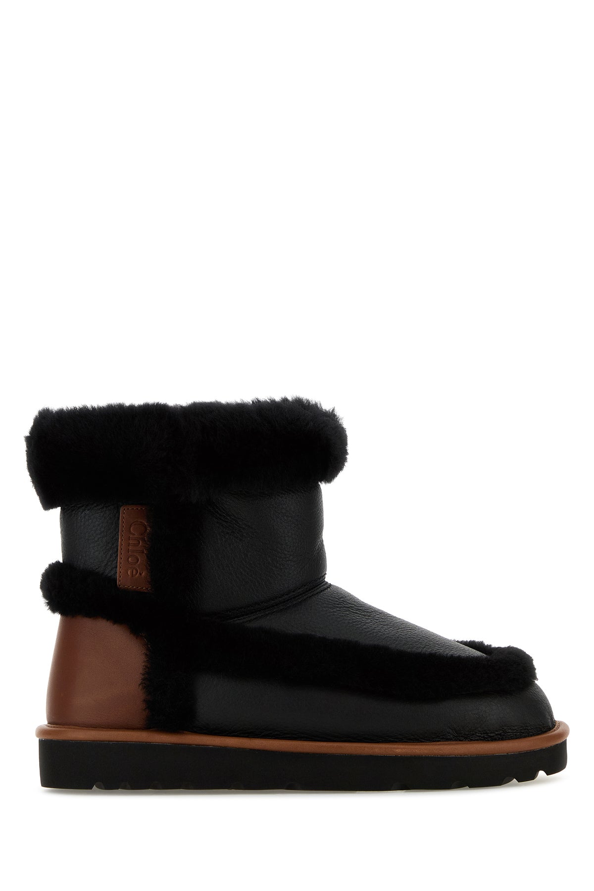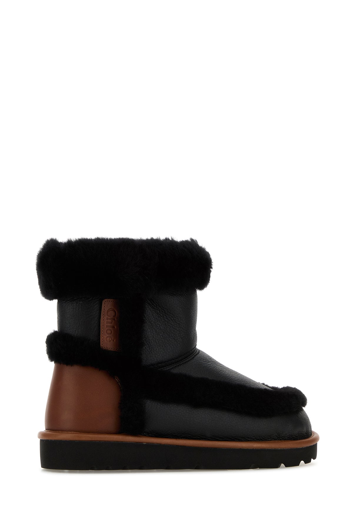 Stivaletti realizzati in montone arricchiti da etichetta logata a contrasto sul lato.