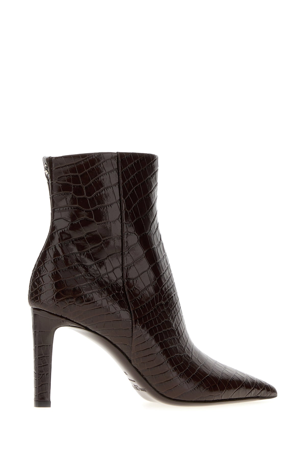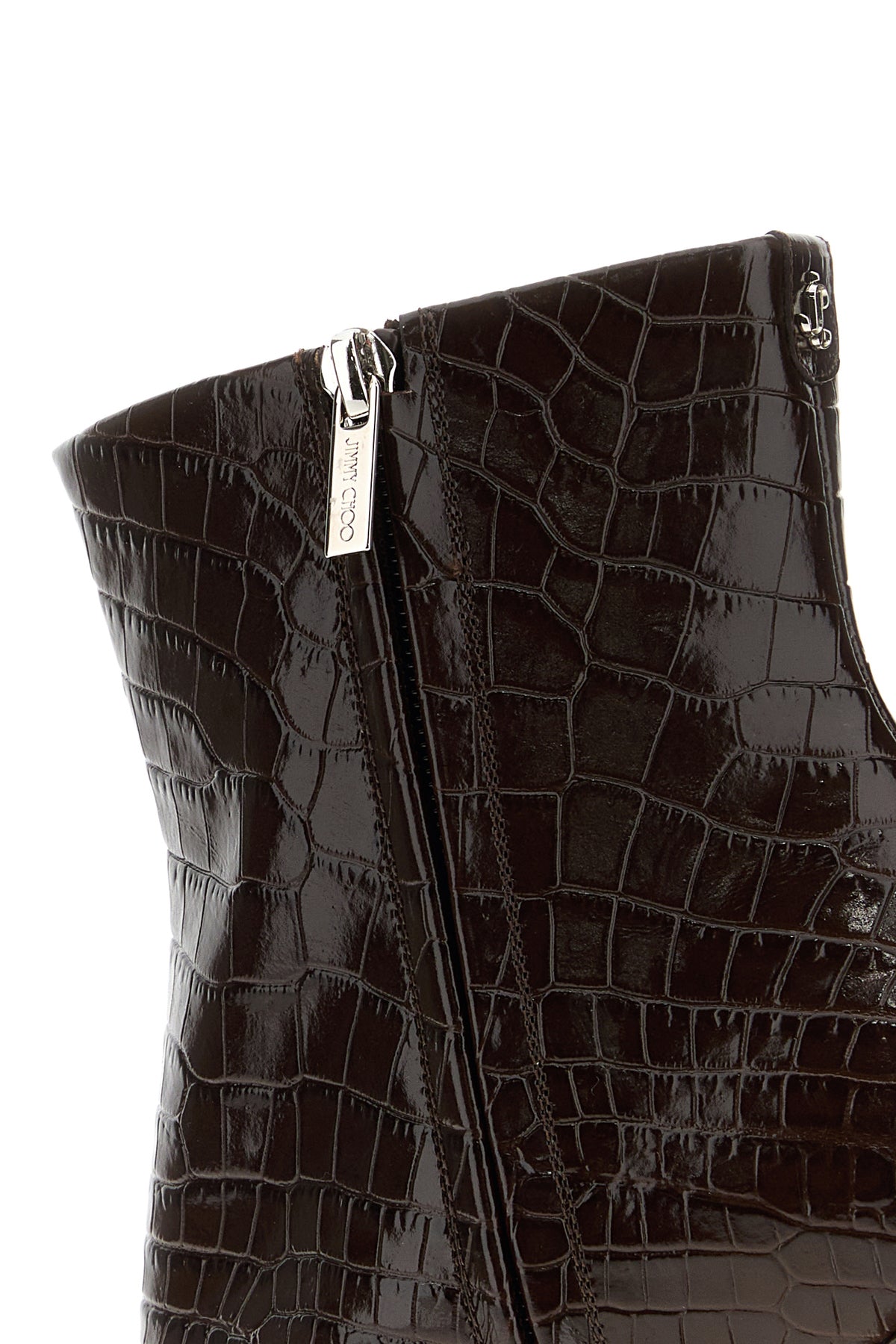 Stivaletti realizzati in pelle impressa a motivo coccodrillo arricchiti da dettaglio metallico logato sul retro.