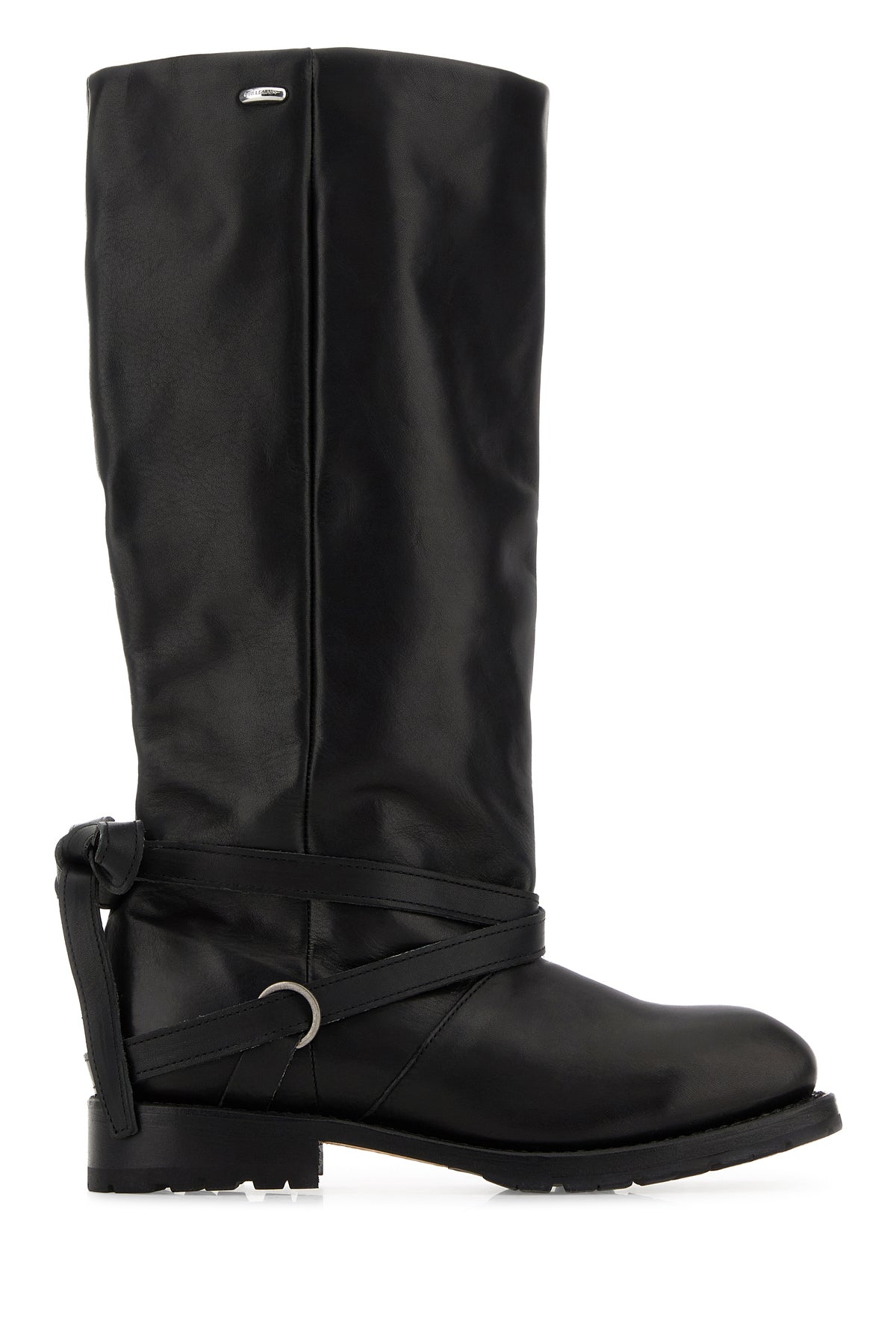 Stivali realizzati in pelle liscia arricchiti da fiocco decorativo sul retro e dettaglio metallico logato sul lato.