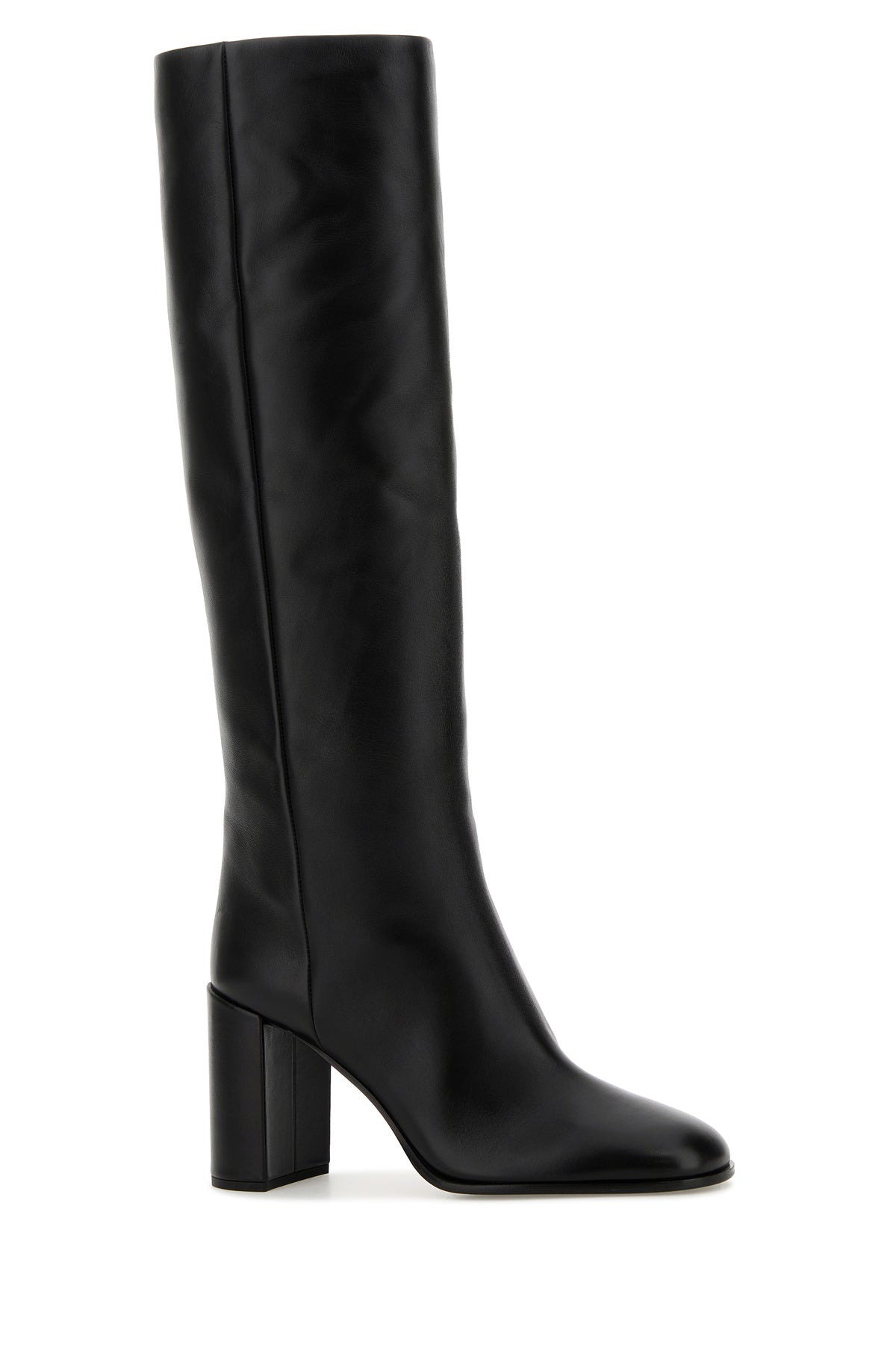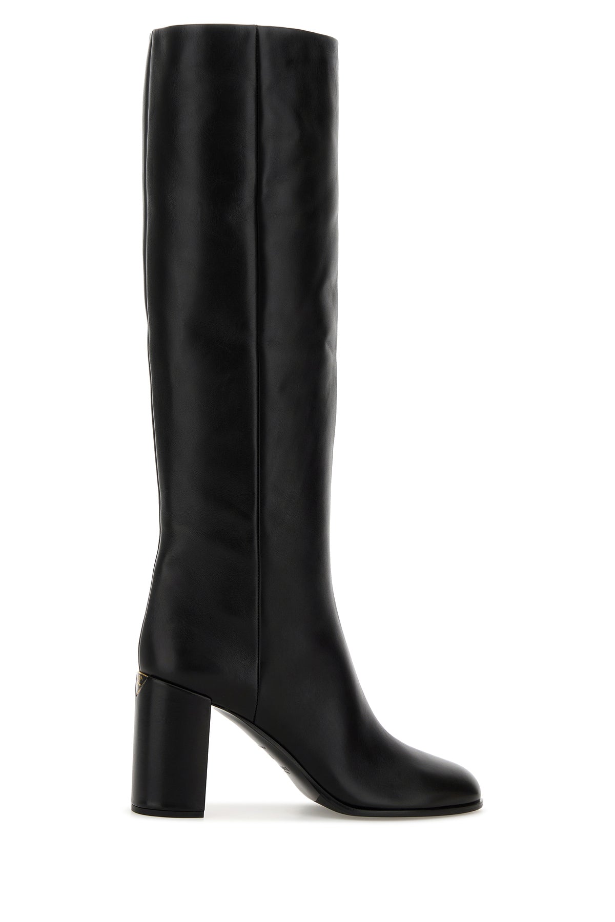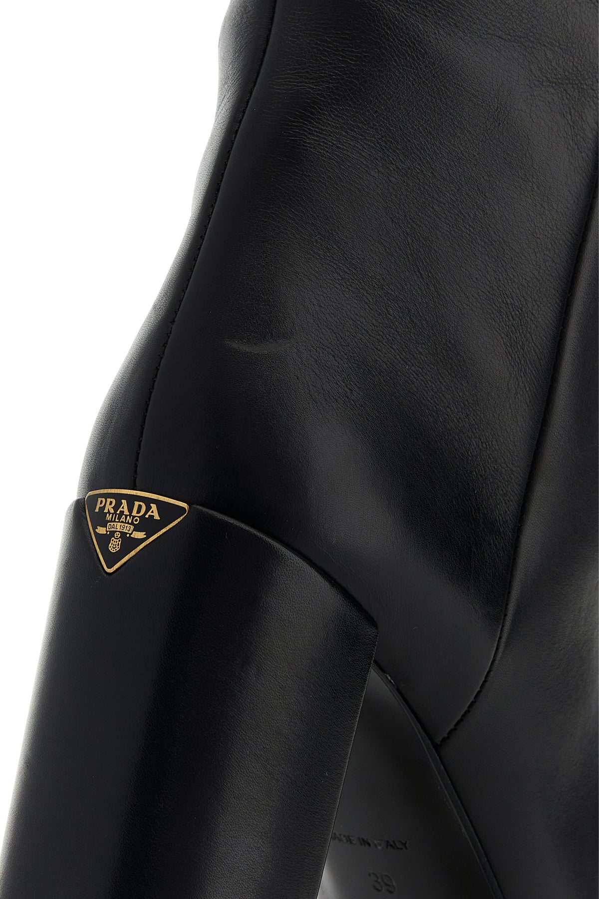 Stivali realizzati in pelle di vitello arricchiti da iconico triangolo metallico logato sul retro.