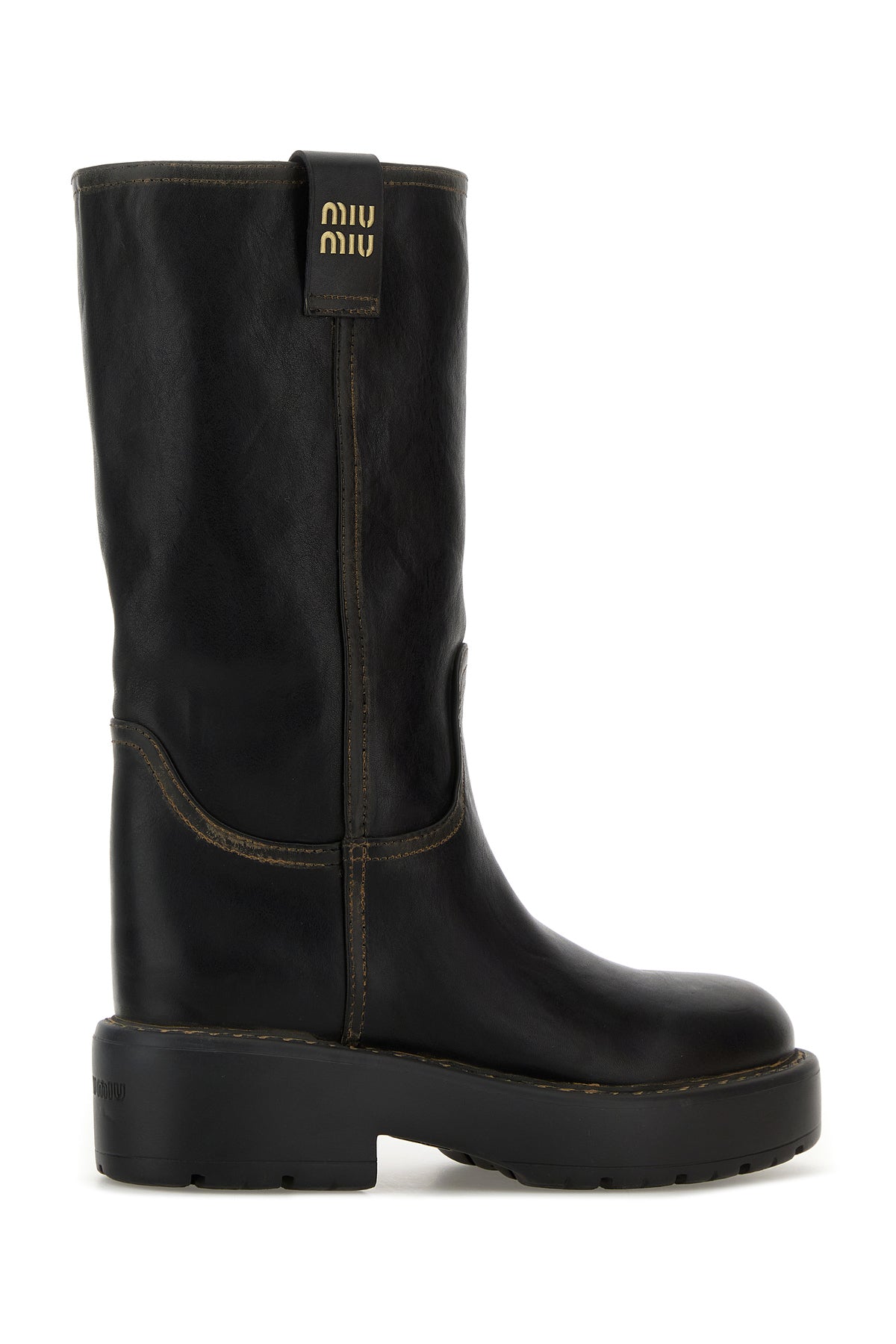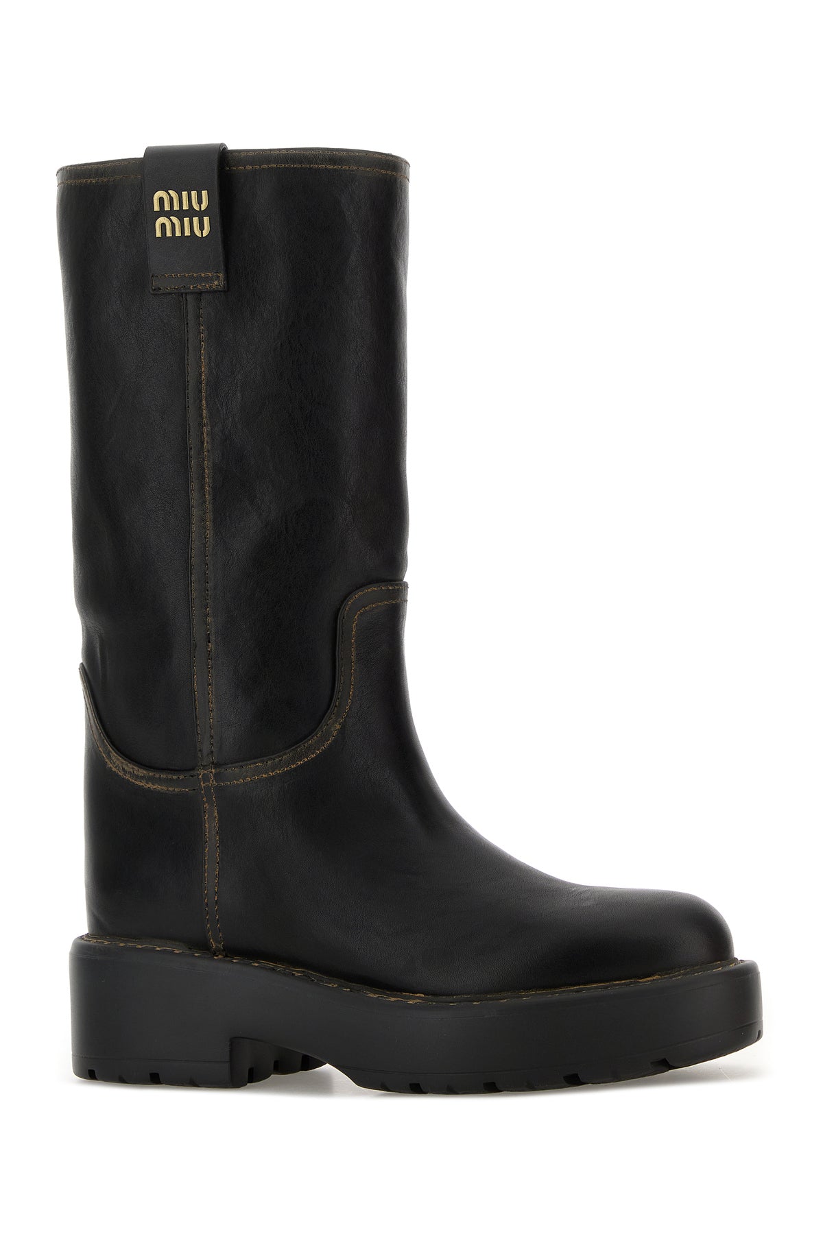 Stivali realizzati in pelle di vitello caratterizzati da logo stampato laminato sui tiranti sulla parte superiore.
