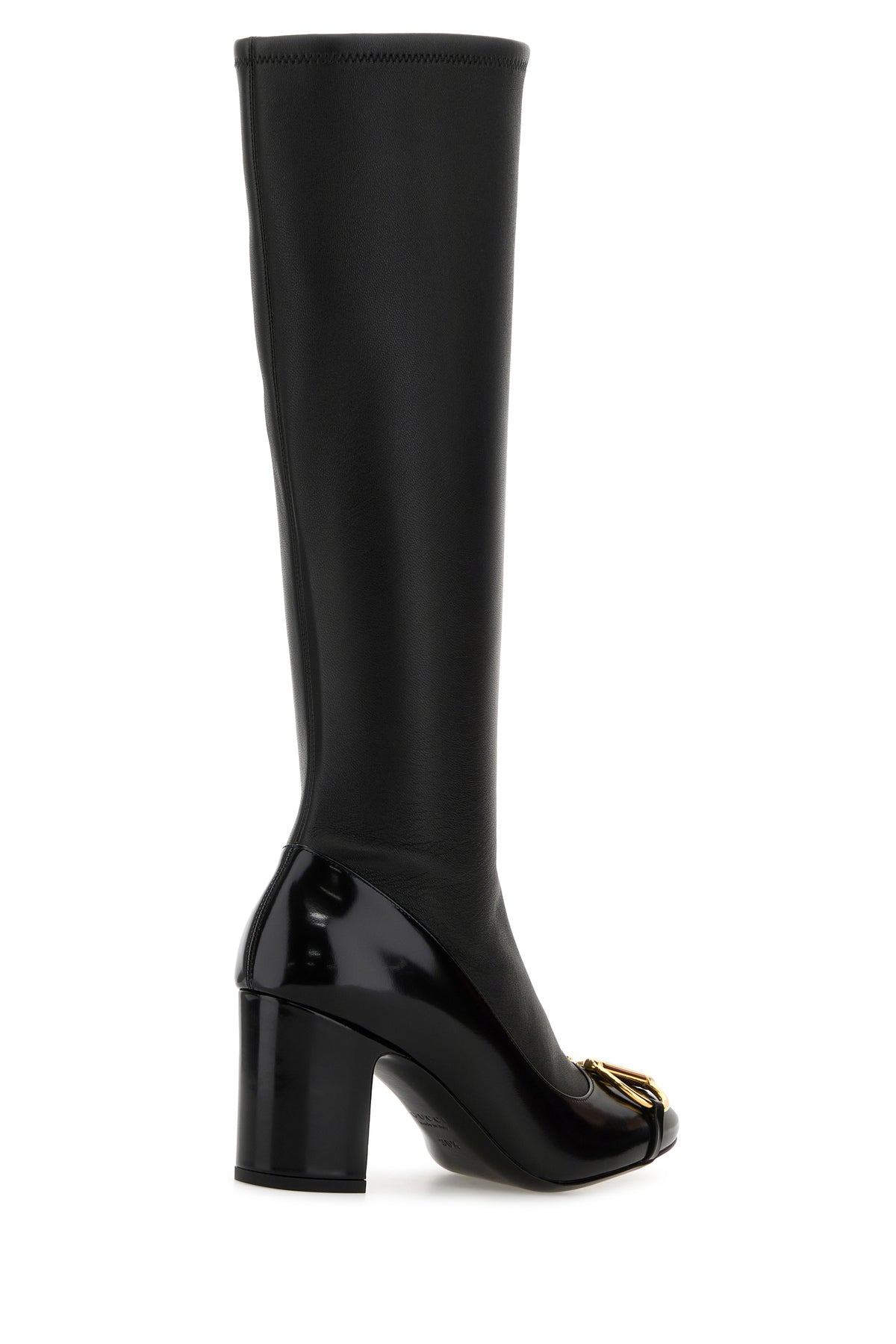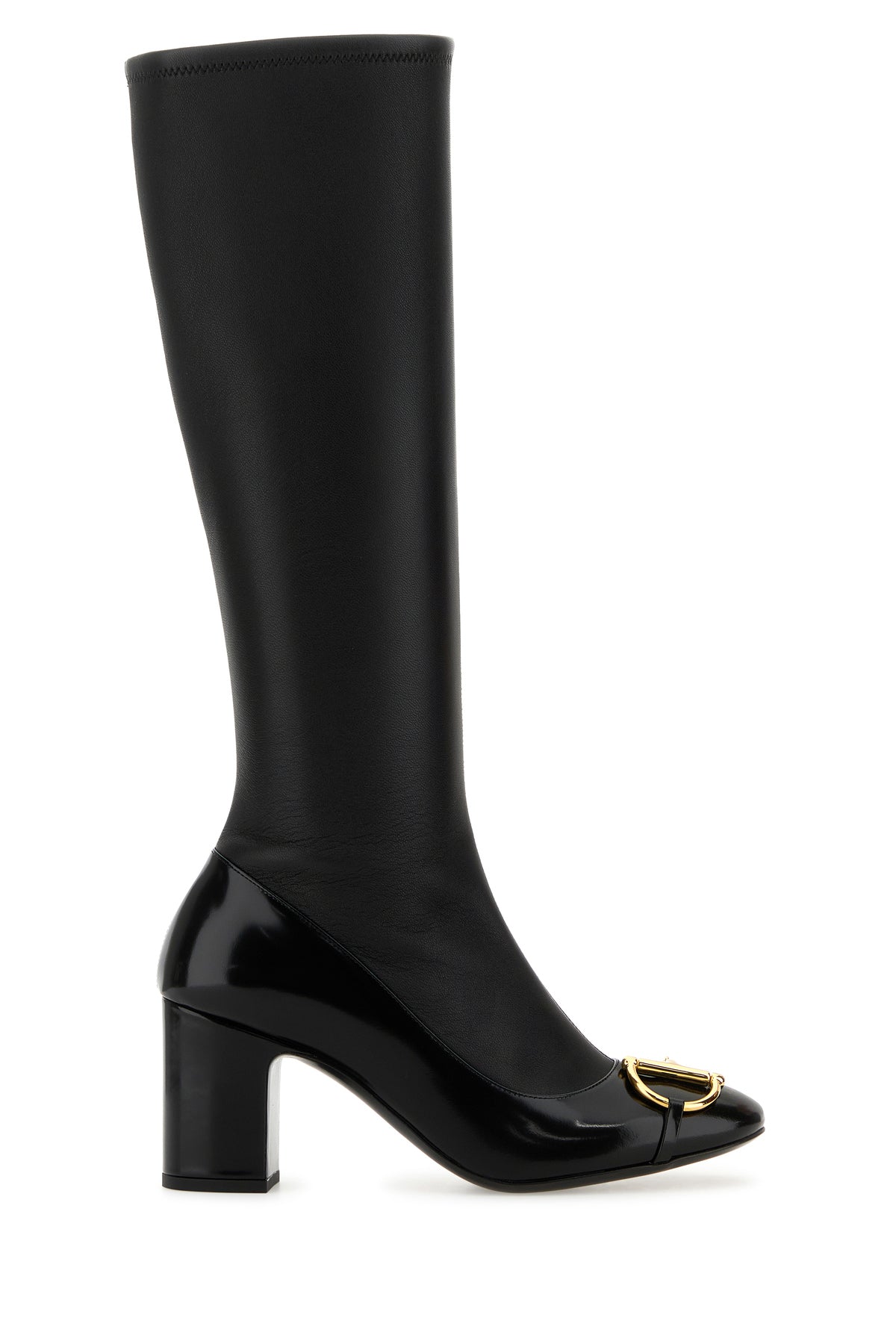 Stivali realizzati in pelle martellata con inserto in pelle dal finish lucido sul fondo arricchita da dettaglio metallico Mezzo Morsetto sulla punta tonda.