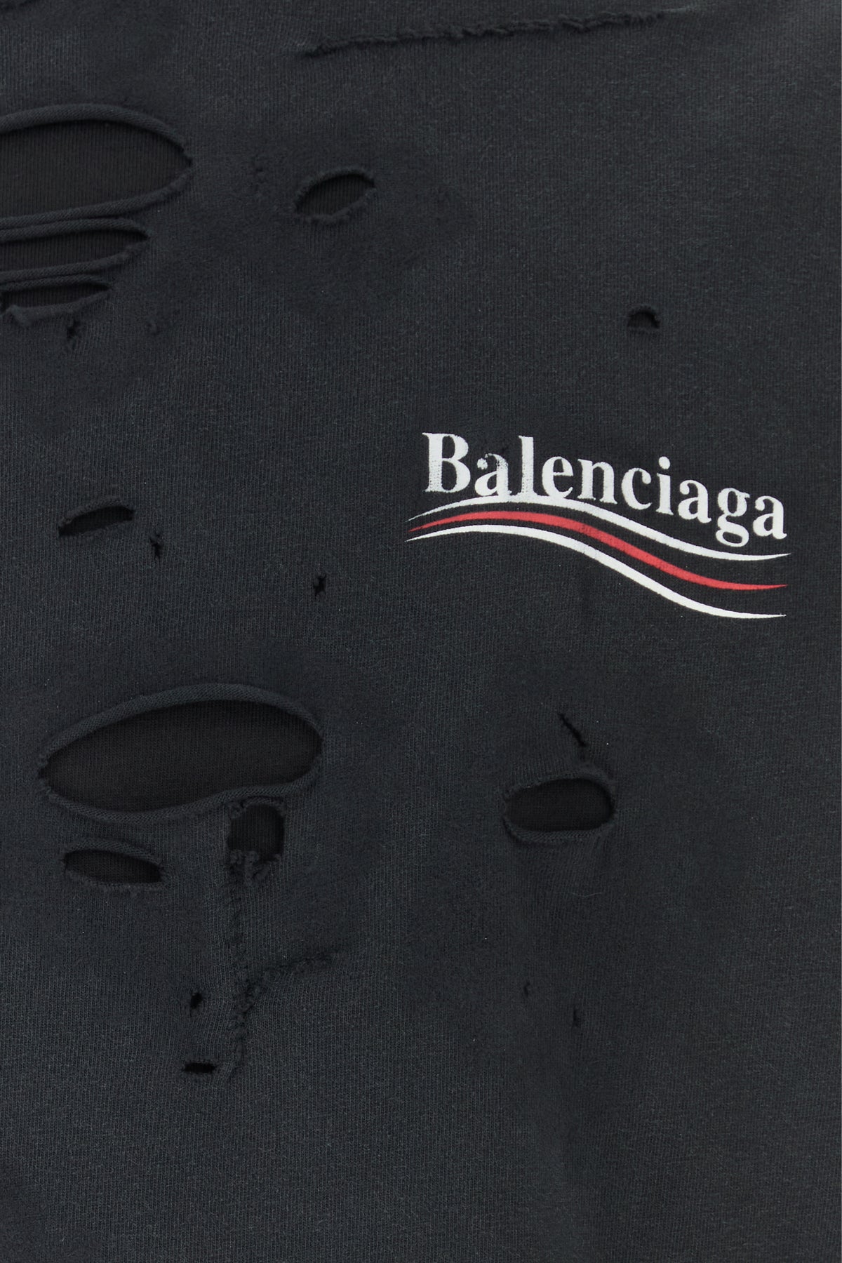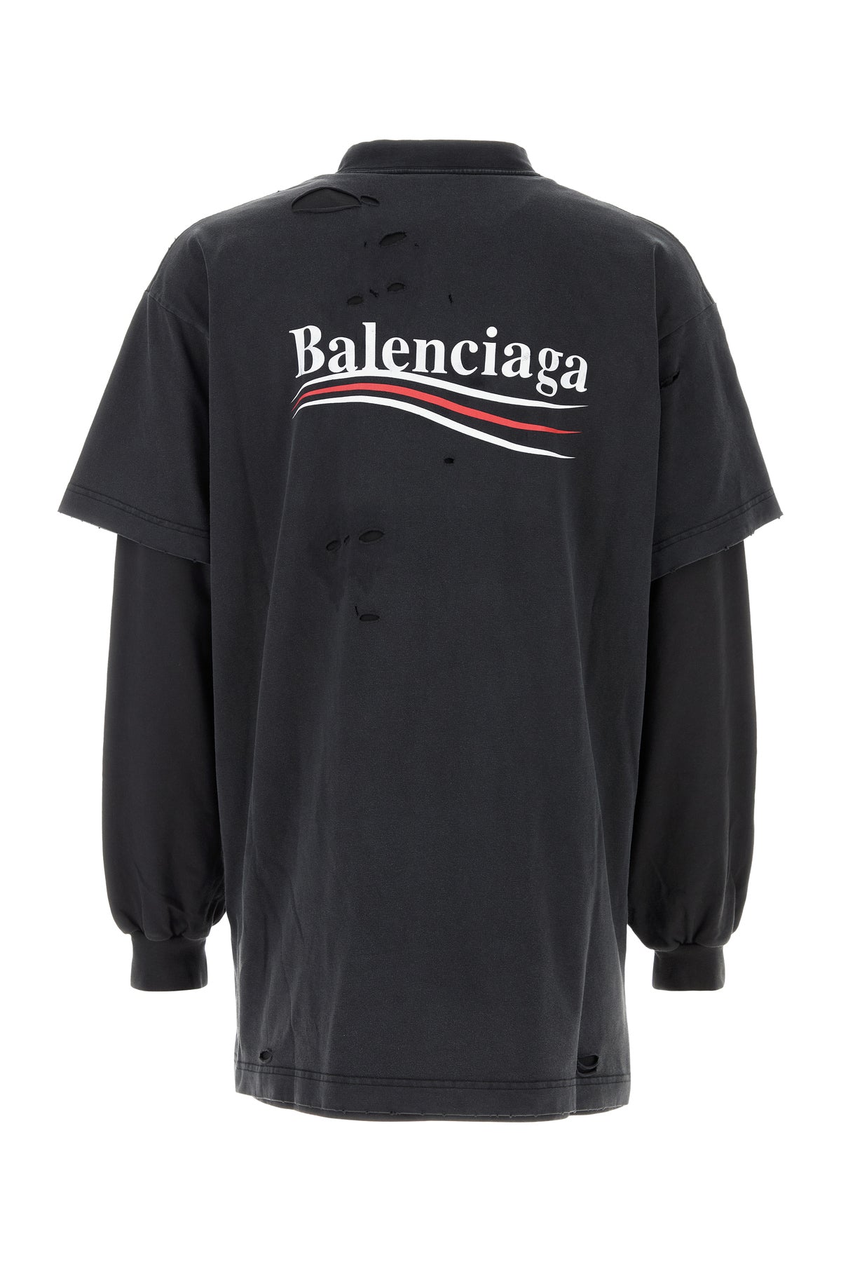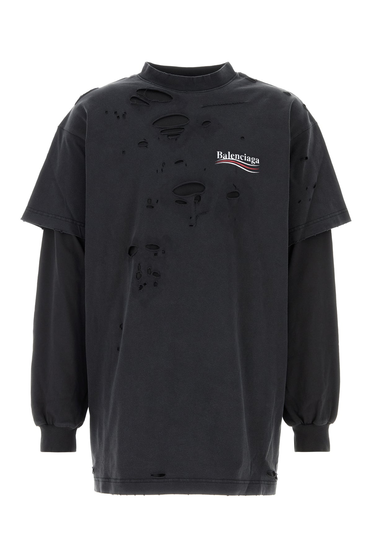 T-shirt a strati realizzata in puro cotone con rotture intenzionali su tutta la superficie caratterizzata da logo stampato a contrasto sul petto e sul retro.