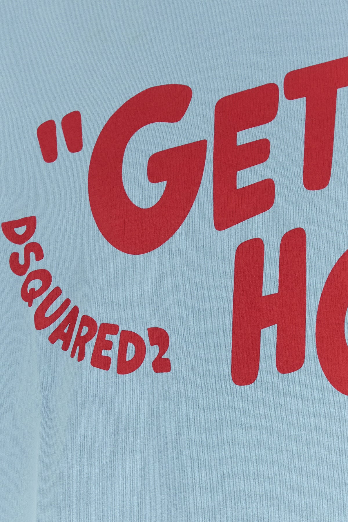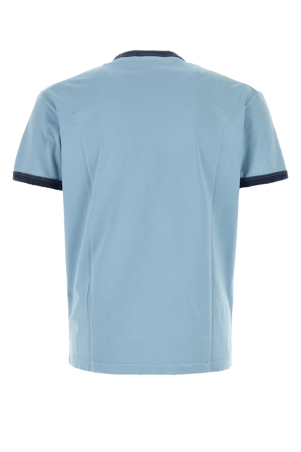 T-shirt realizzata in puro cotone sdrucito con sporcature intenzionali caratterizzata da stampa logata a contrasto sulla parte frontale.