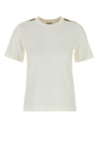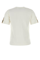 T-shirt realizzata in puro cotone caratterizzata da ricamo Equestrian Knight tonale sul petto arricchita da inserti in tessuto Burberry Check sulle spalle.