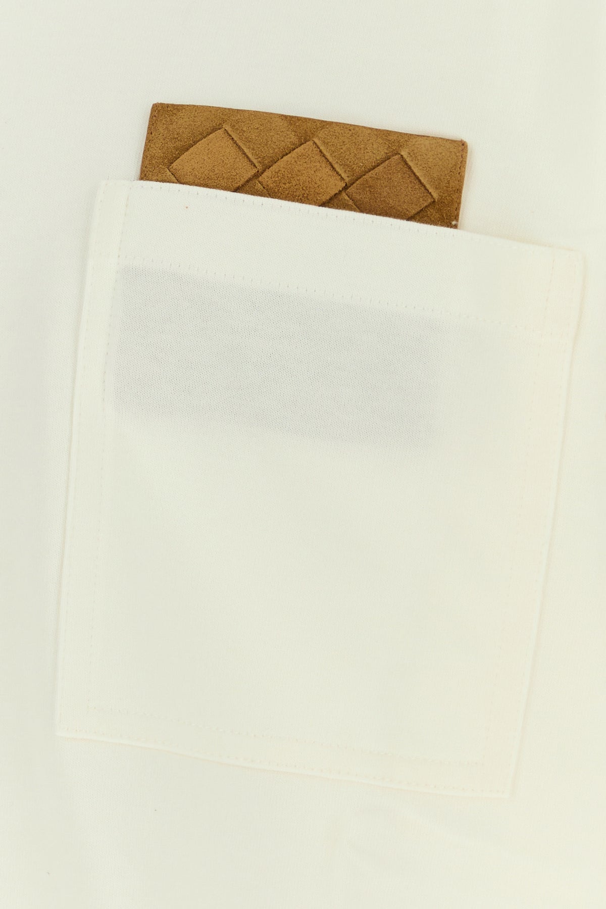 T-shirt realizzato in puro cotone arricchito da applicazione logata a contrasto sul taschino sul petto.