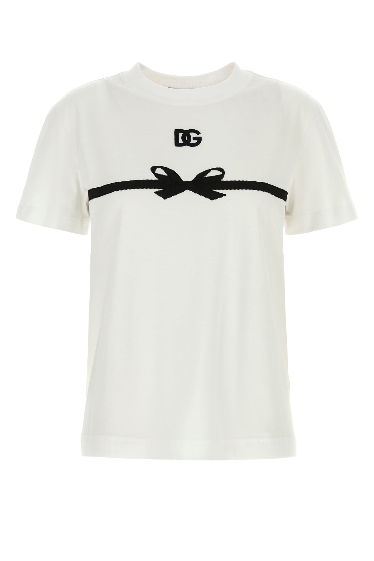 T-shirt realizzata in puro cotone caratterizzata da ricamo DG sul petto arricchita da applicazione Fiocco sulla parte frontale e sul retro.