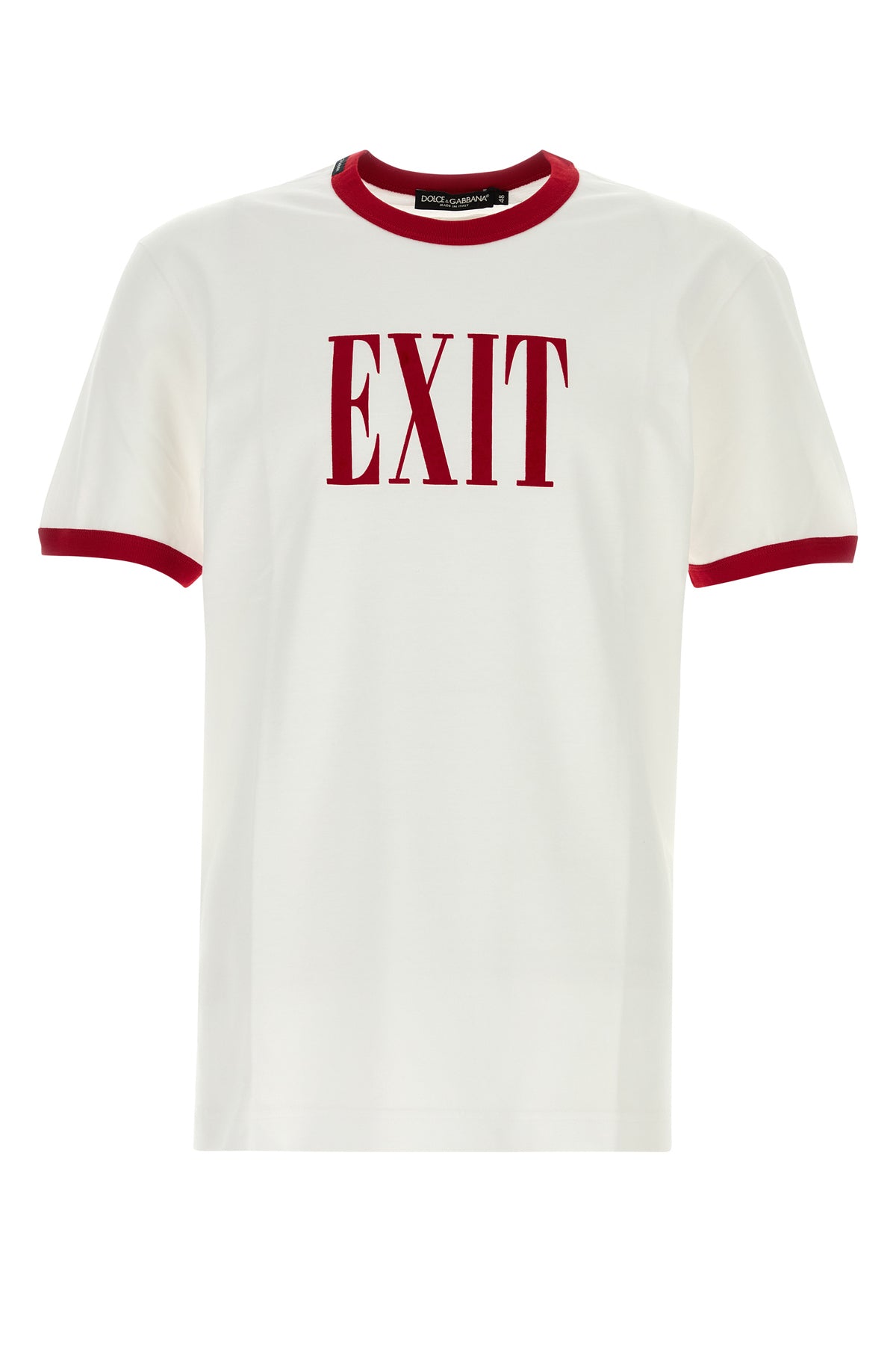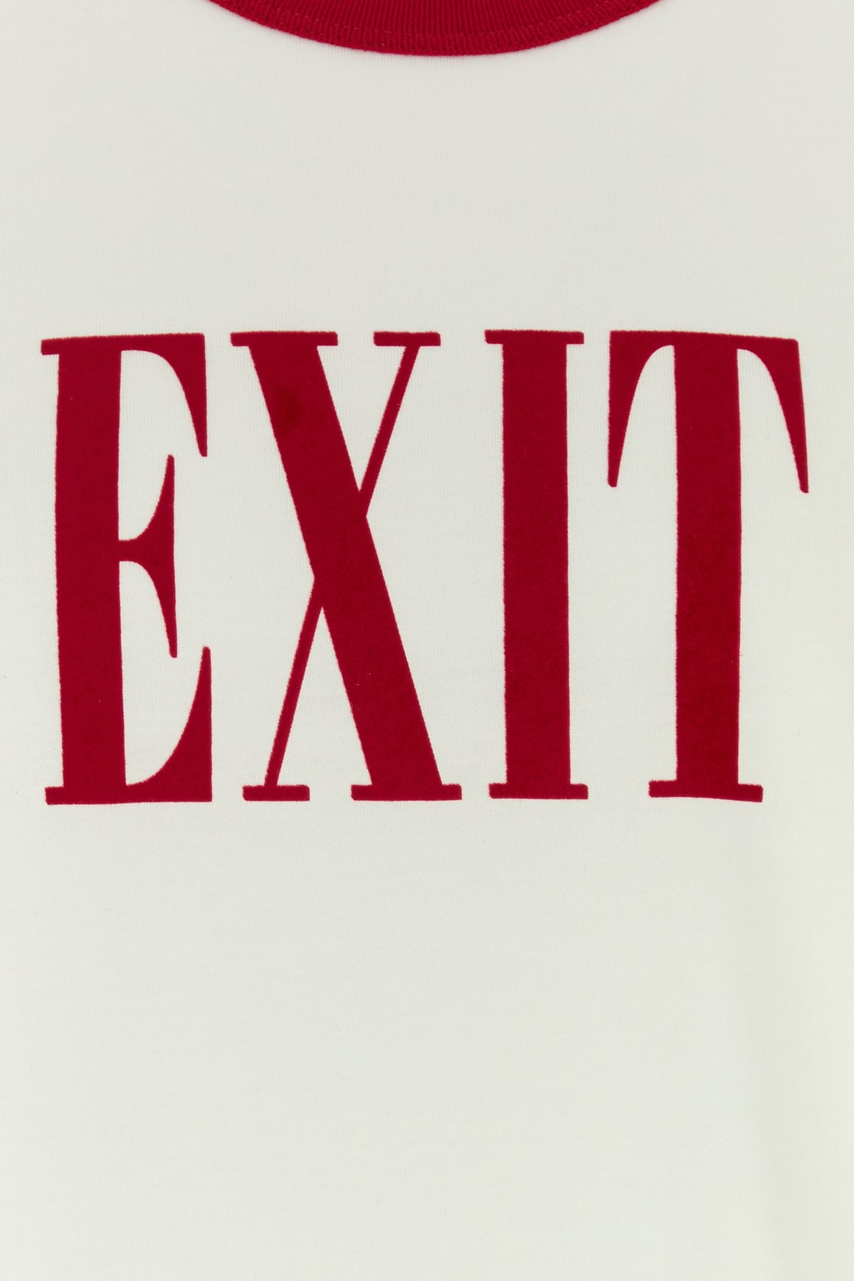 T-shirt realizzata in puro cotone caratterizzata da stampa floccata sul petto.