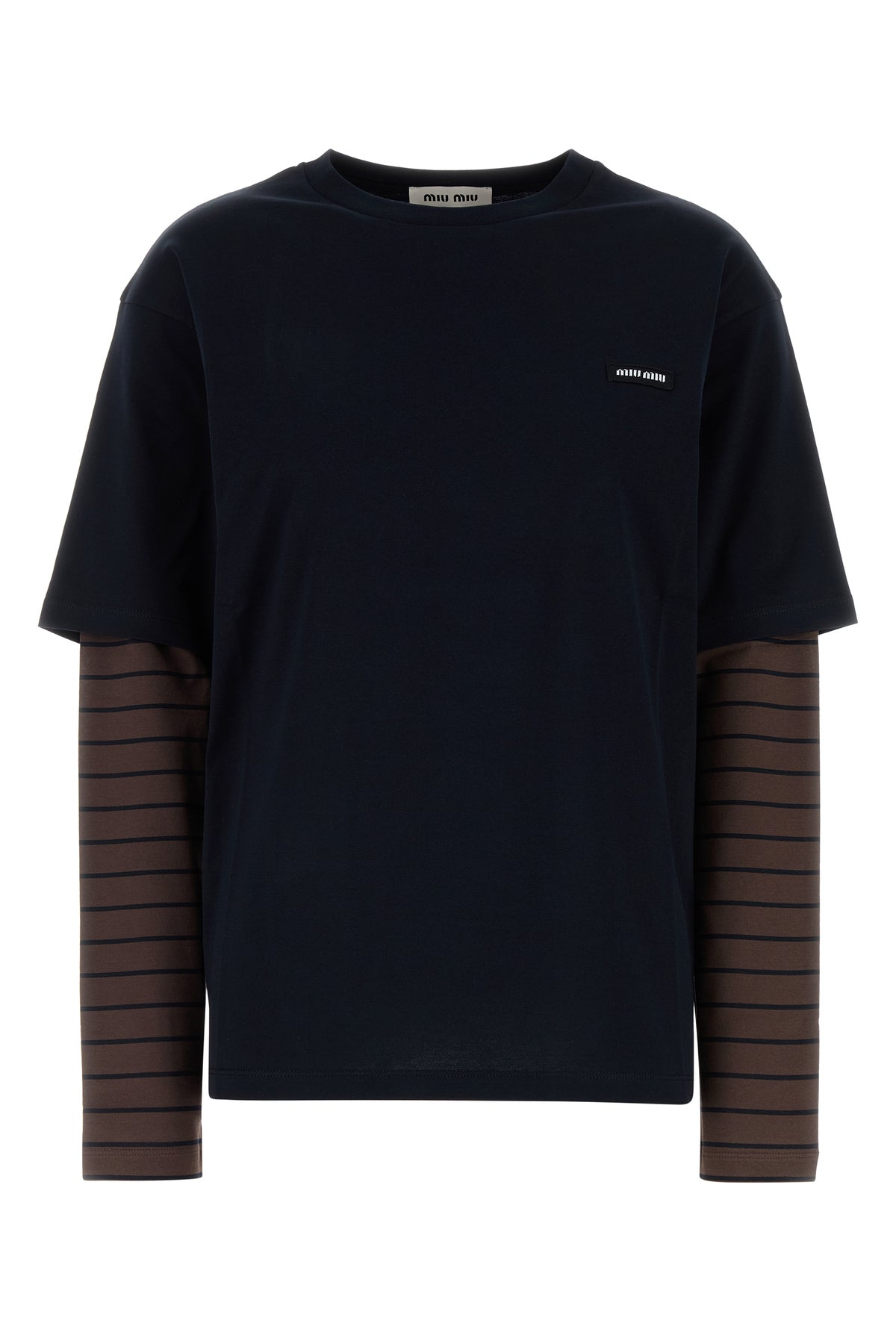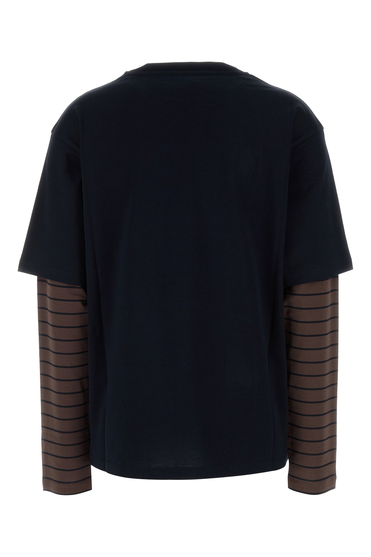 T-shirt a maniche lunghe realizzata in puro cotone con inserti a contrasto sulle maniche arricchita da etichetta logata sul petto.