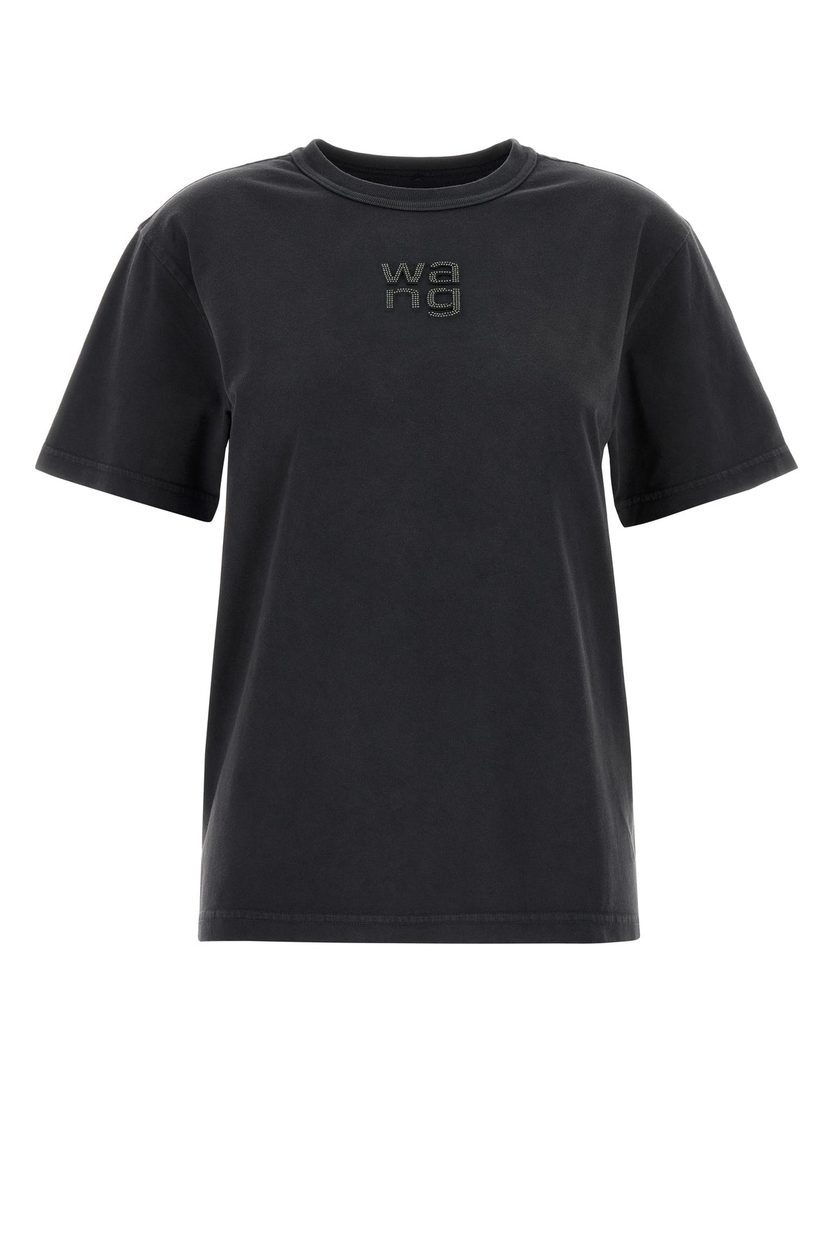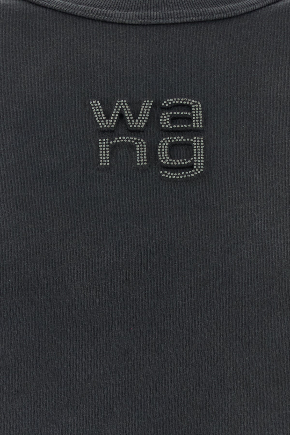 T-shirt realizzata in puro cotone slavato arricchita da applicazione Wang con cristalli sulla parte frontale.