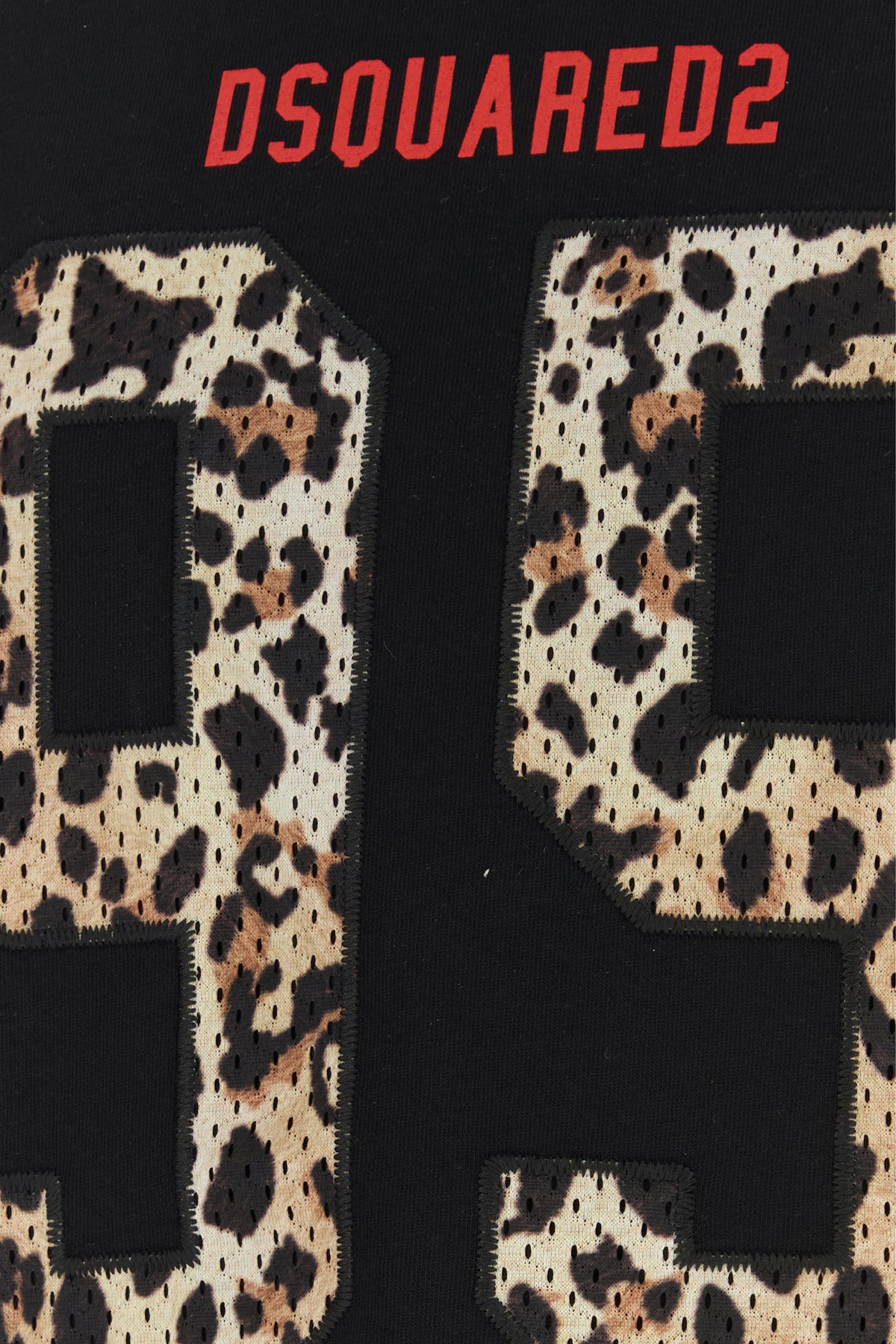 T-shirt oversize realizzata in puro cotone caratterizzata da stampa Dsquared2 sulla parte frontale arricchita da da applicazione 95 a motivo animalier sulla parte frontale.